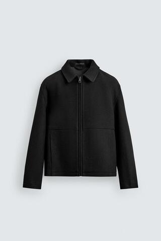 ZARA КУРТКА-БОМБЕР ИЗ ТКАНИ «ЁЛОЧКА» НА МОЛНИИ, ЧЕРНЫЙ