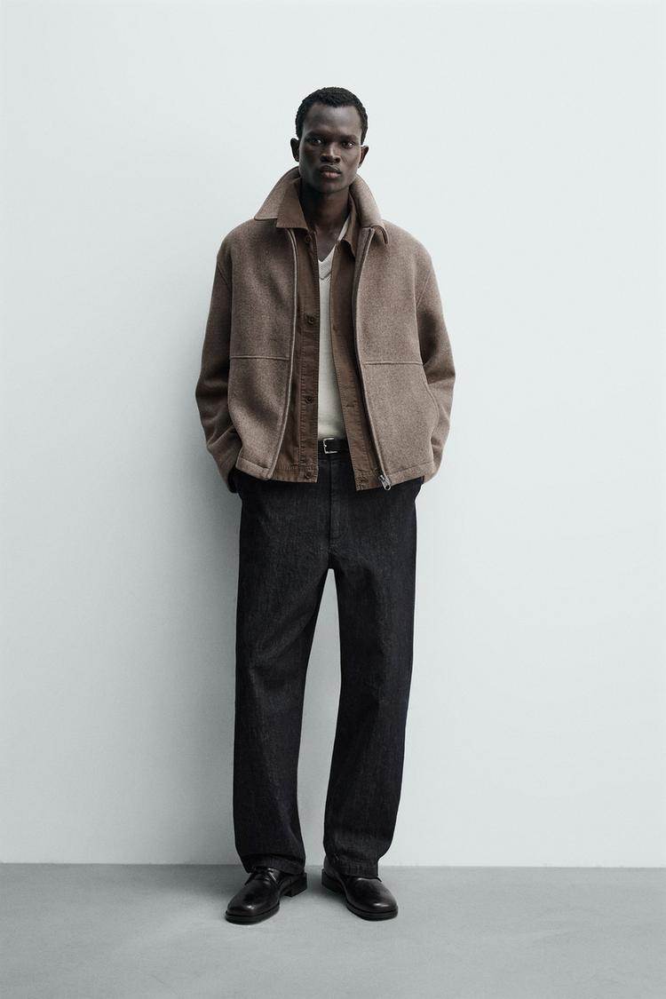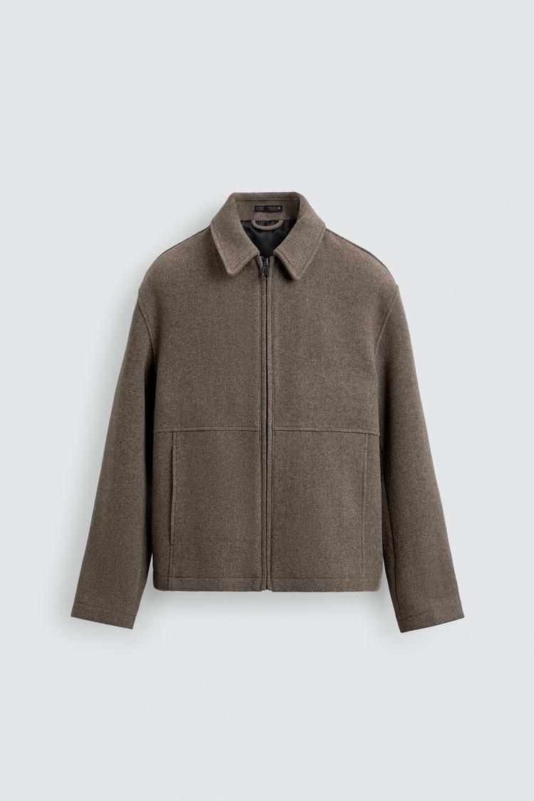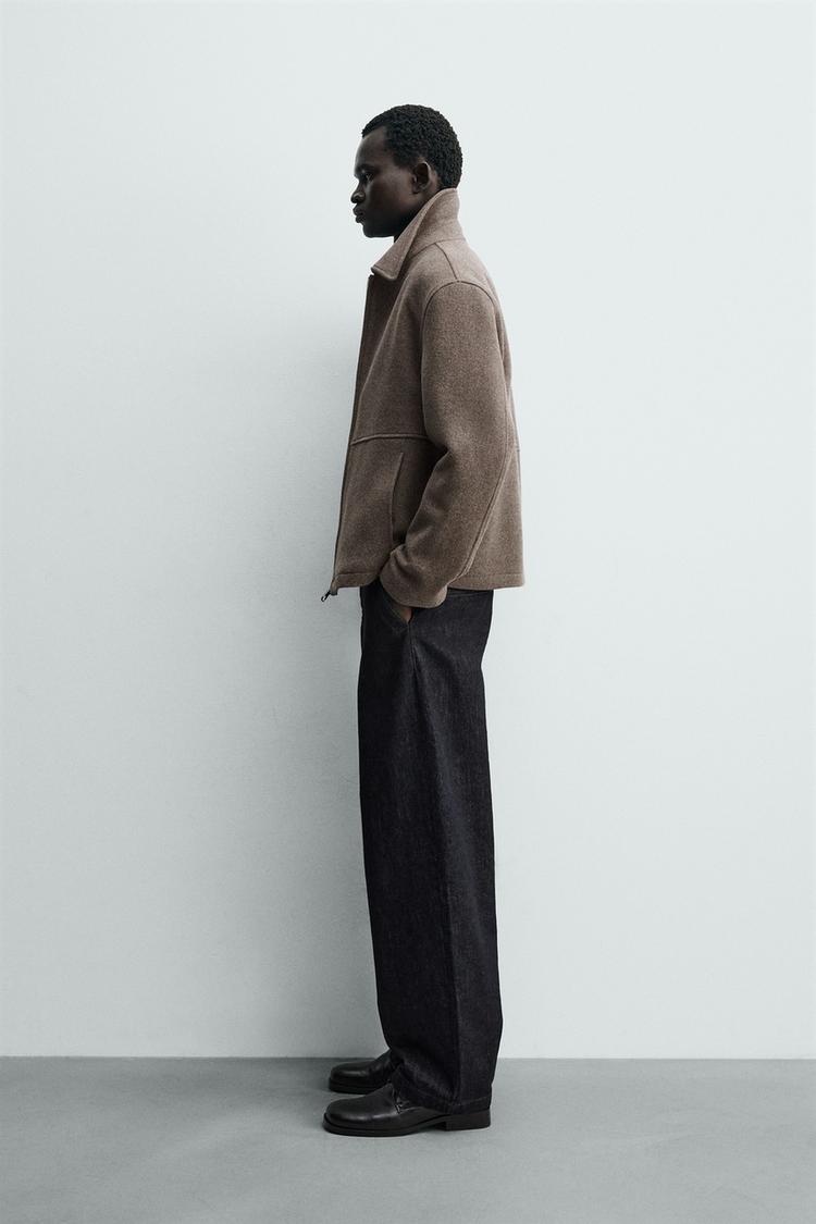ZARA КУРТКА-БОМБЕР ИЗ ТКАНИ «ЁЛОЧКА» НА МОЛНИИ, ПЕСОЧНЫЙ