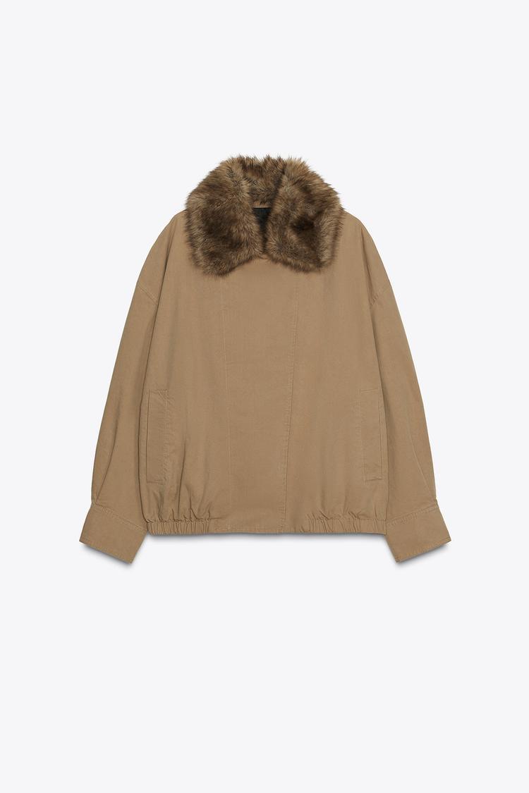 ZARA КУРТКА-БОМБЕР С МЕХОВЫМ ВОРОТНИКОМ — ZW COLLECTION, ТЕМНЫЙ БЕЖЕВО-КОРИЧНЕВЫЙ
