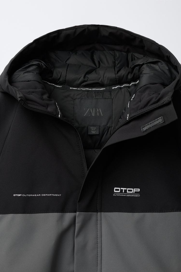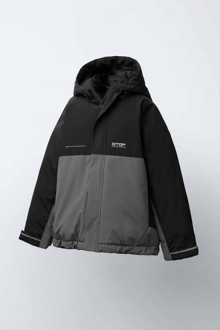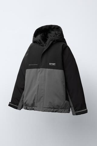 ZARA КУРТКА COLOR BLOCK WATER REPELLENT, ЧЕРНЫЙ