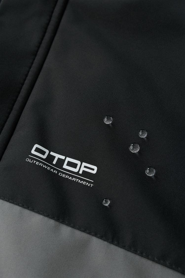 Куртка с капюшоном, высоким воротником с фиксаторами и длинными рукавами, регулируемыми липучками. Изготовлена из водоотталкивающей ткани. Передняя застежка-молния скрыта под планкой с липучками. Передние карманы на скрытых молниях. Текстовый принт спереди.