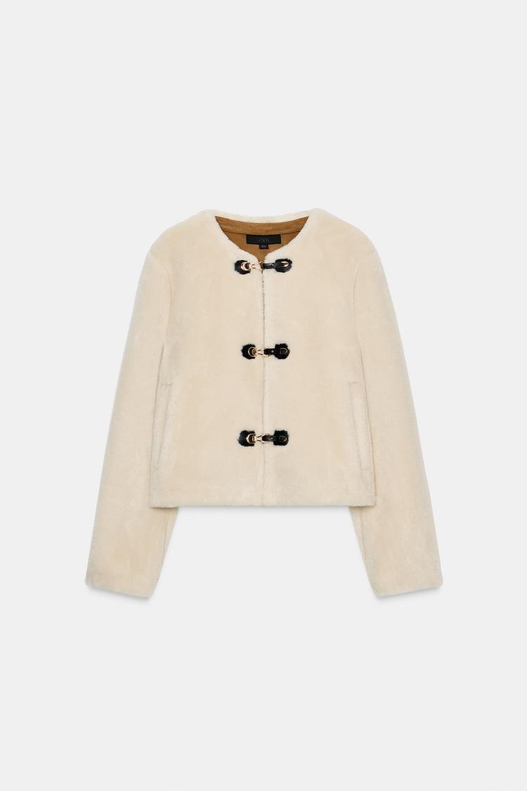 ZARA КУРТКА-ДУБЛЕНКА С НАВЕСНЫМИ ЗАСТЕЖКАМИ, ЭКРЮ
