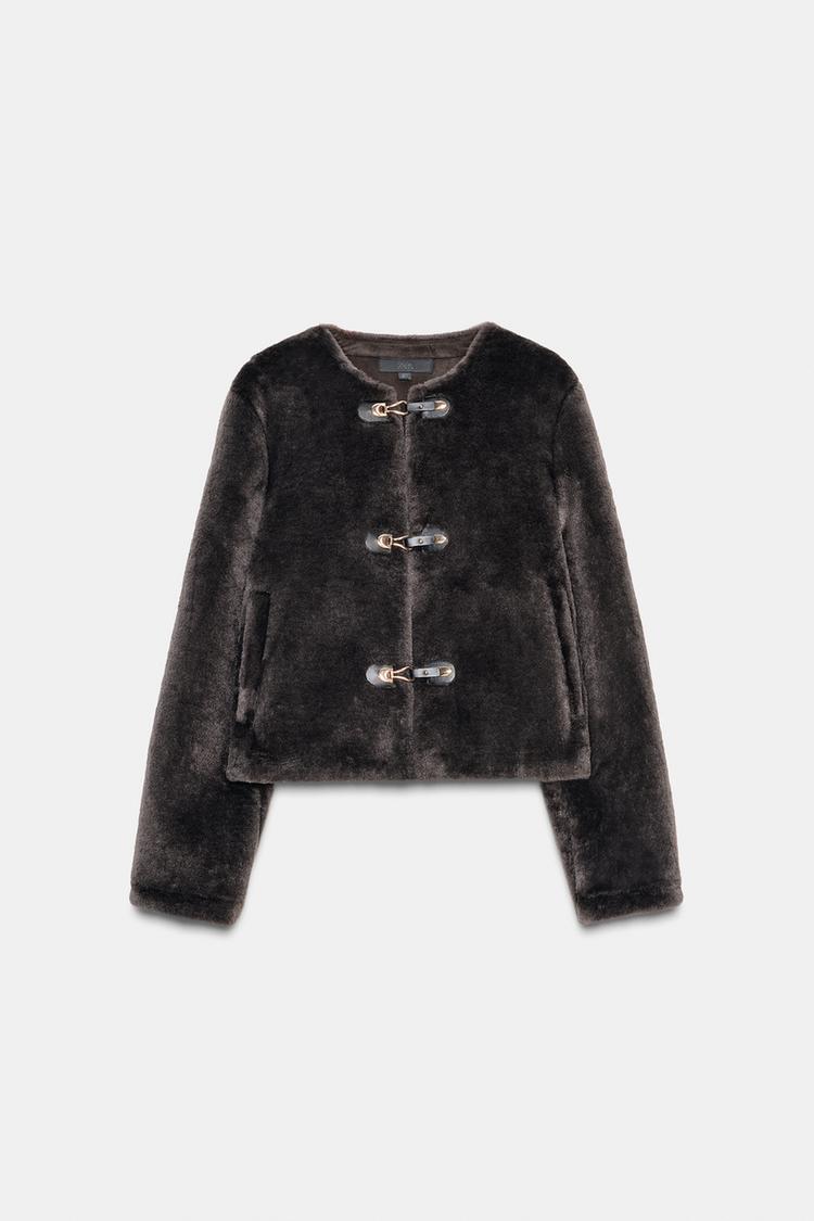 ZARA КУРТКА-ДУБЛЕНКА С НАВЕСНЫМИ ЗАСТЕЖКАМИ, КОРИЧНЕВЫЙ