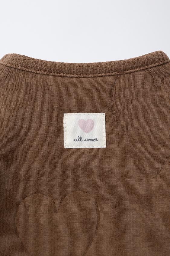 ZARA КУРТКА ФЛИСОВАЯ С СЕРДЕЧКАМИ, КОРИЧНЕВЫЙ