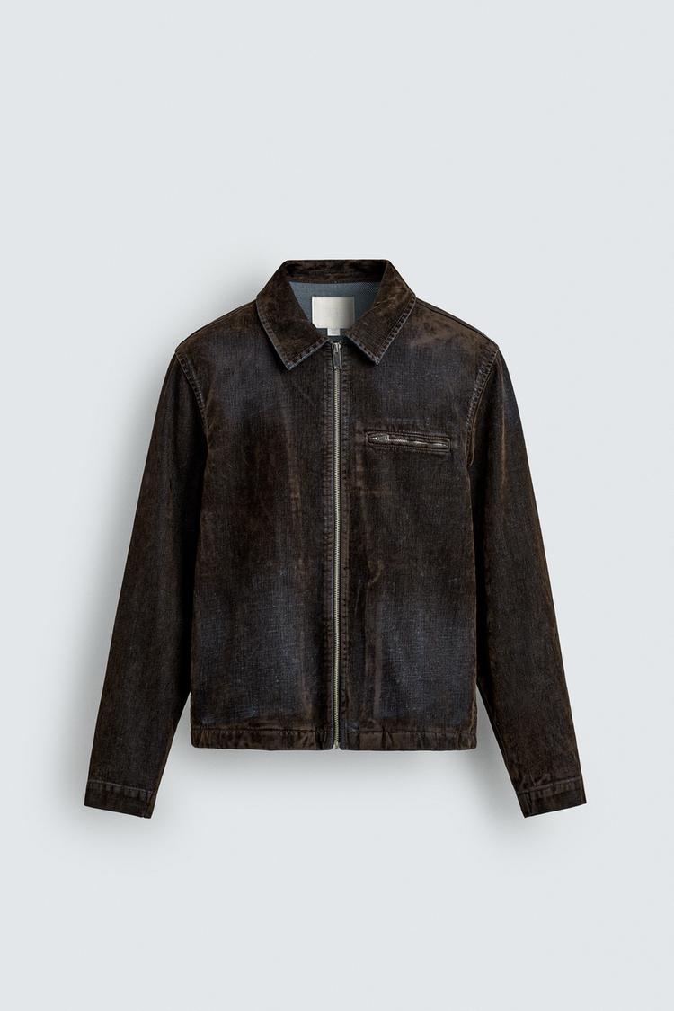 ZARA КУРТКА ФЛОКИРОВАННЫЙ БАРХАТ, КОРИЧНЕВЫЙ