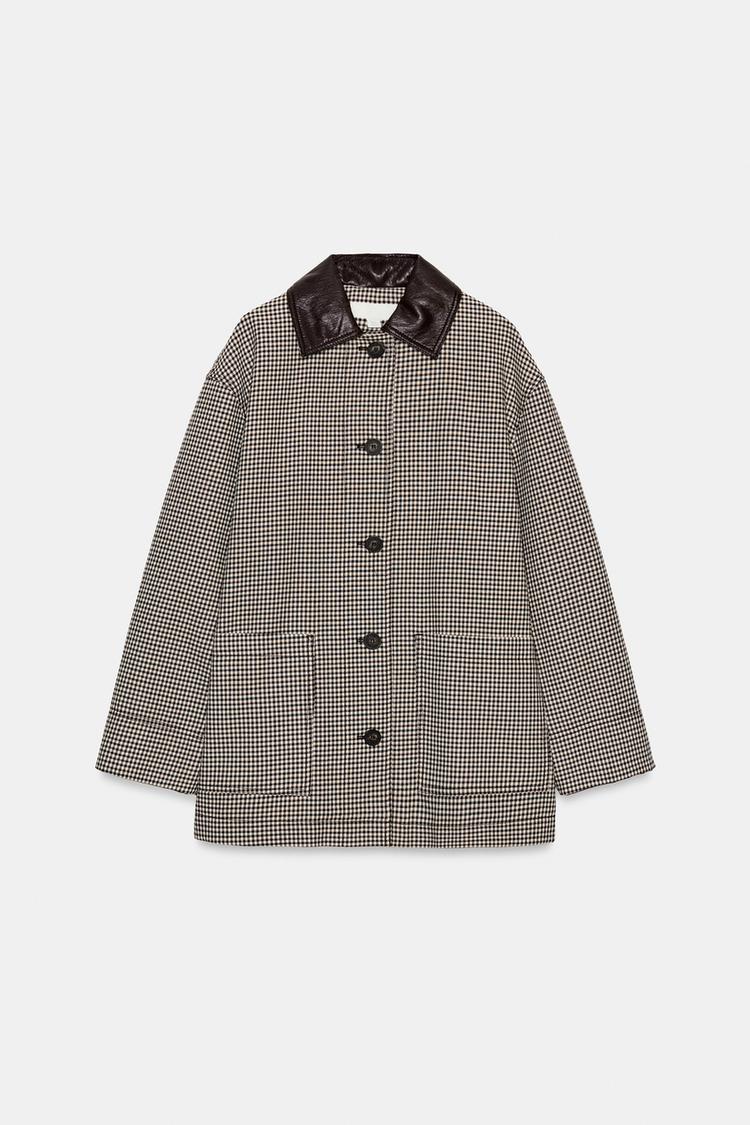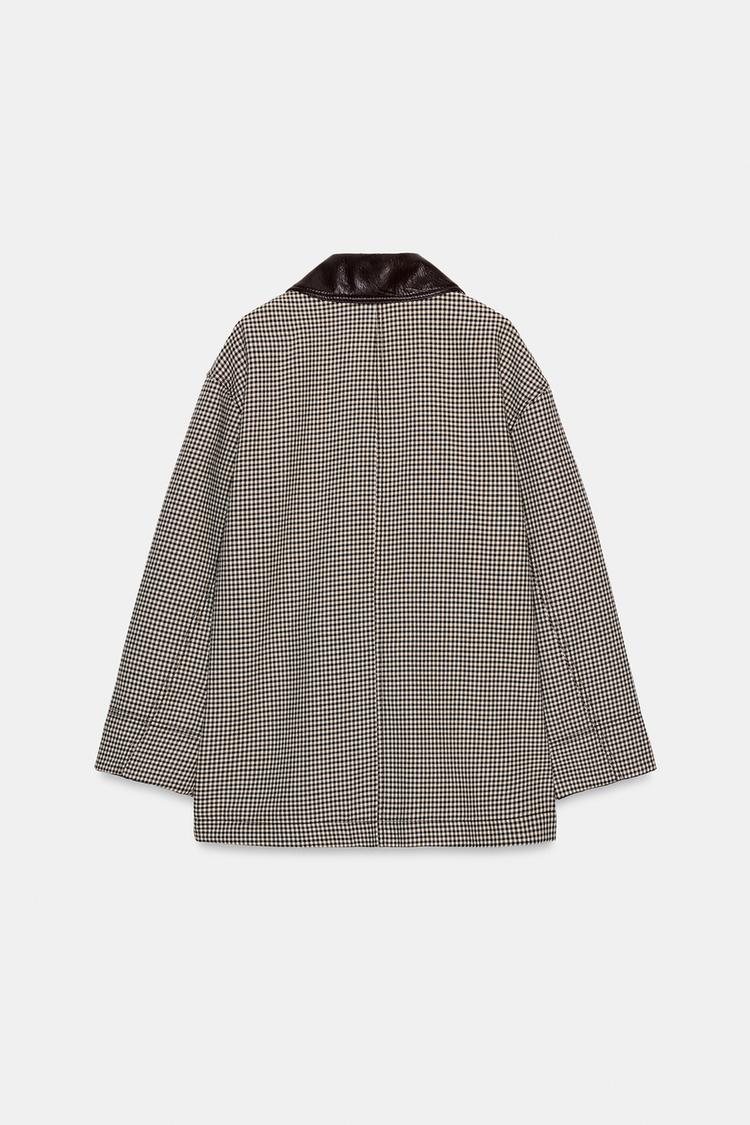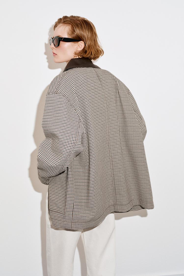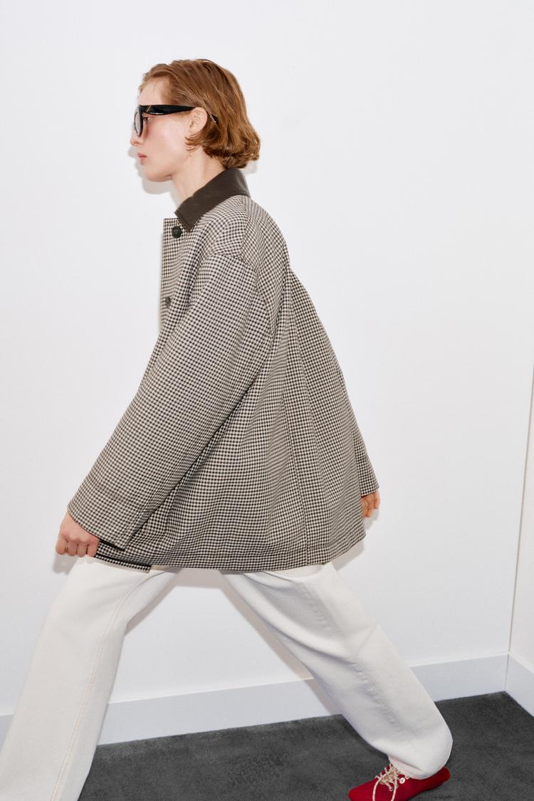 ZARA КУРТКА «ГУСИНАЯ ЛАПКА» С ОТДЕЛКОЙ ПОД КОЖУ, ЧЕРНЫЙ/ЭКРЮ