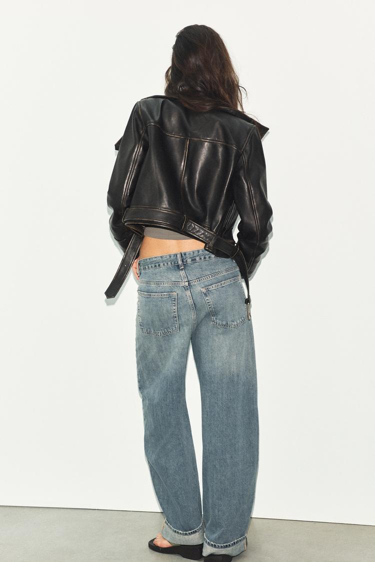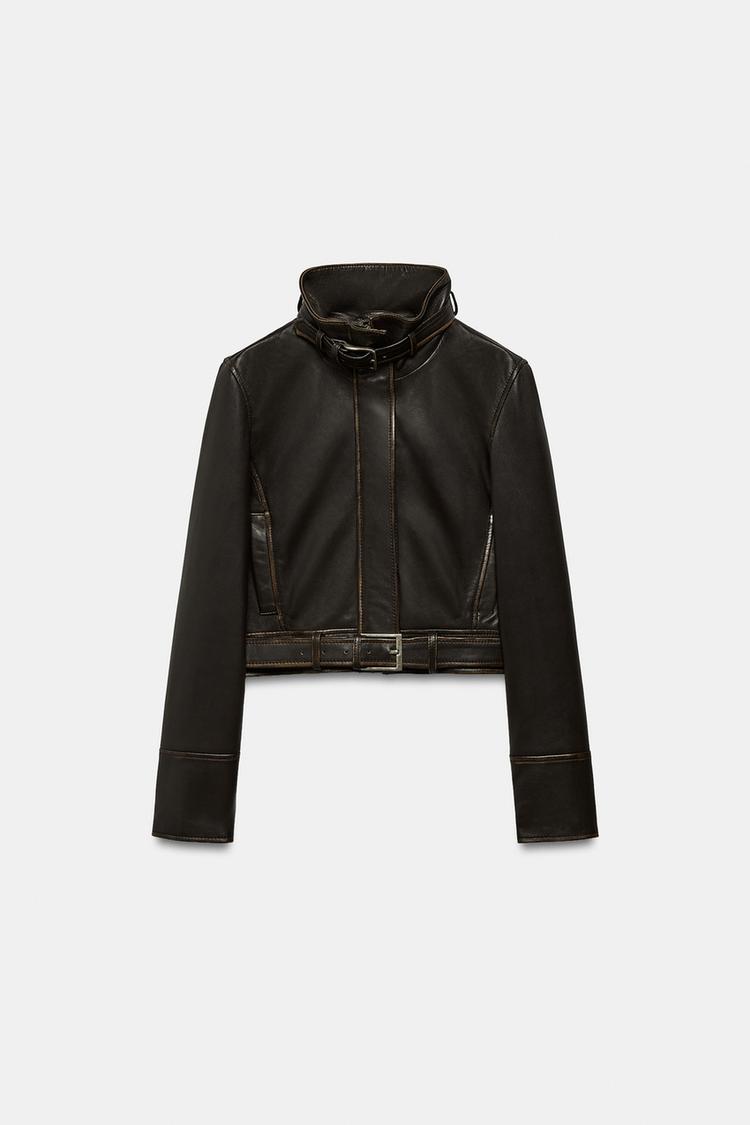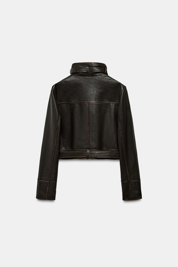 ZARA КУРТКА ИЗ 100% КОЖИ, ТЕМНО-КОРИЧНЕВЫЙ