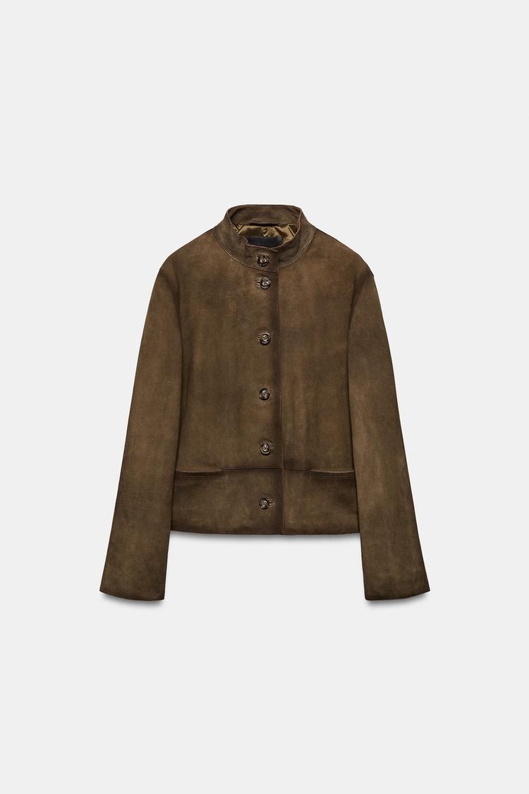 ZARA КУРТКА ИЗ 100% КОЖИ — ZW COLLECTION LIMITED EDITION, ОЛИВКОВЫЙ