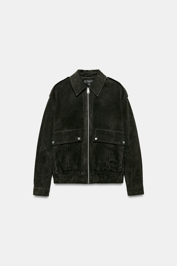ZARA КУРТКА ИЗ 100% НАТУРАЛЬНОЙ ЗАМШИ, ХАКИ