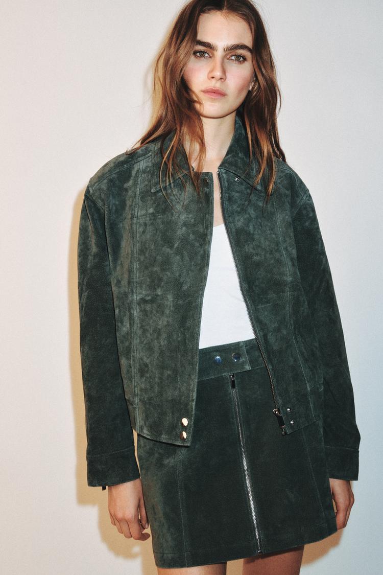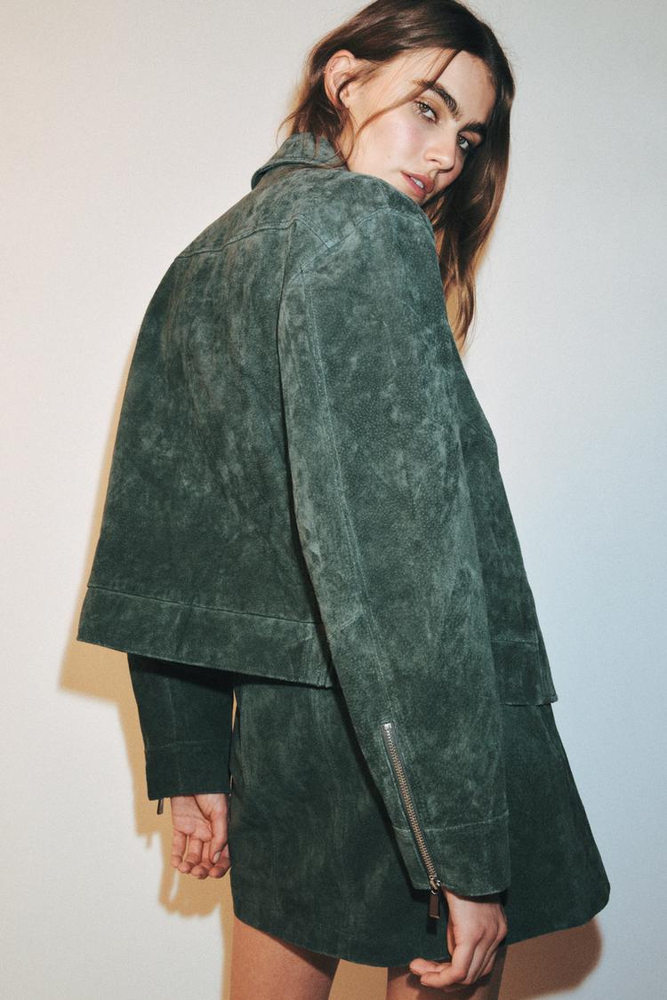 ZARA КУРТКА ИЗ 100% ЗАМШИ, ХАКИ