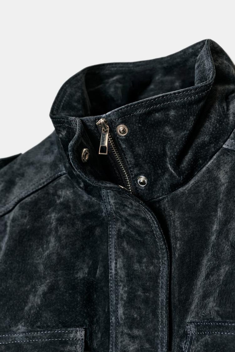 ZARA КУРТКА ИЗ 100% ЗАМШИ С КАРМАНАМИ, СИНИЙ
