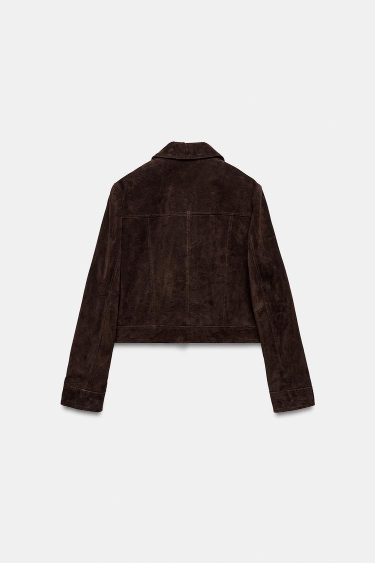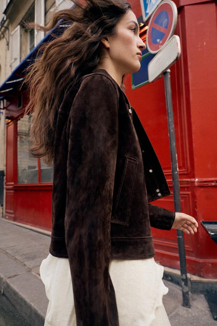 ZARA КУРТКА ИЗ 100% ЗАМШИ, ТЕМНО-КОРИЧНЕВЫЙ