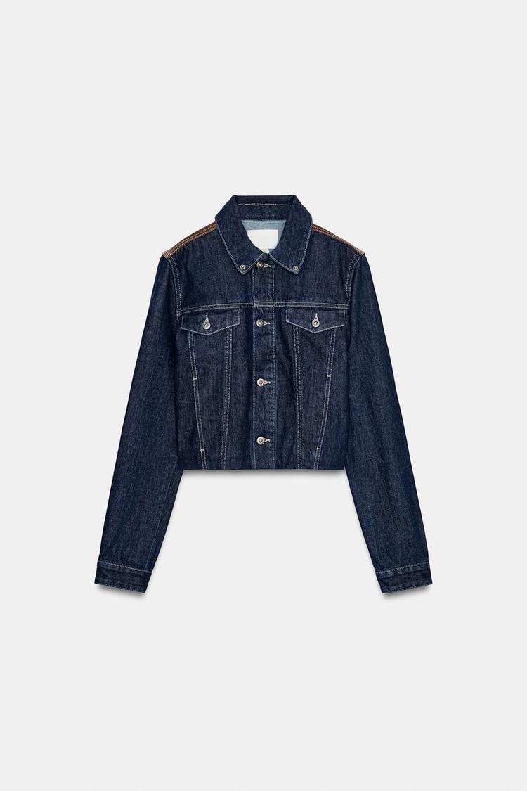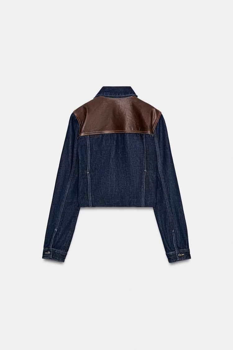 ZARA КУРТКА ИЗ ДЕНИМА И КОЖИ, ТЕМНЫЙ ИНДИГО