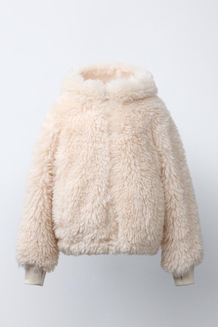 ZARA КУРТКА ИЗ ИСКУССТВЕННОГО МЕХА, ЭКРЮ