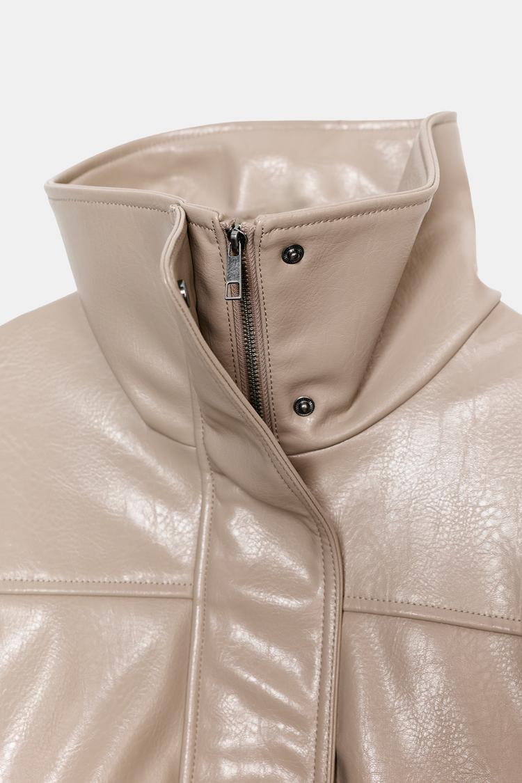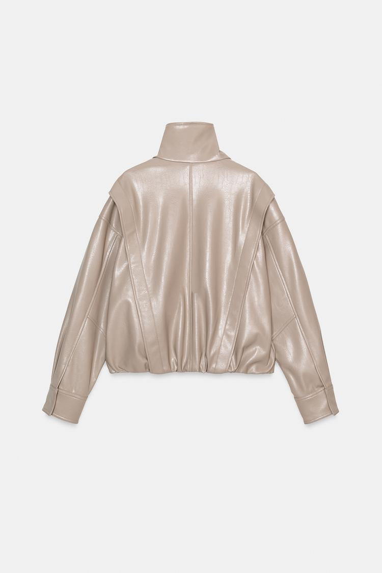 ZARA КУРТКА ИЗ ИСКУССТВЕННОЙ КОЖИ СО СКЛАДКАМИ, КАМЕННЫЙ МЕЛАНЖ