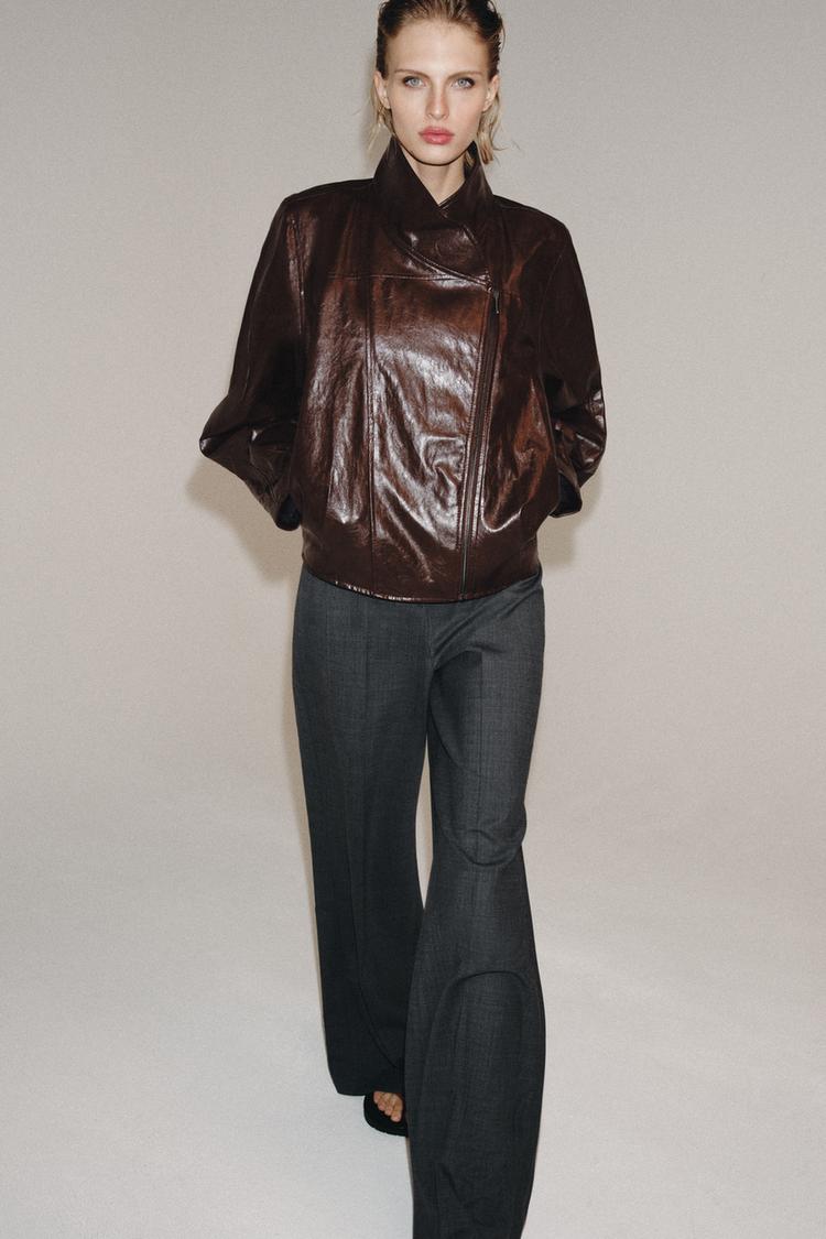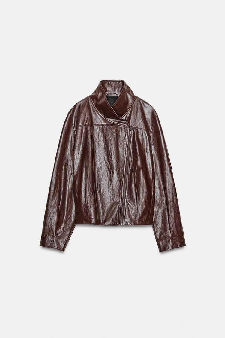 ZARA КУРТКА ИЗ ИСКУССТВЕННОЙ КОЖИ — ZW COLLECTION, БУРГУНДИ