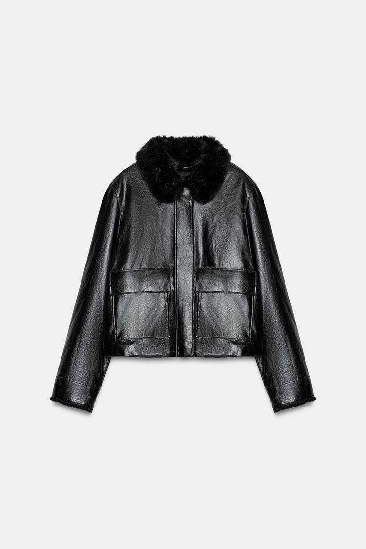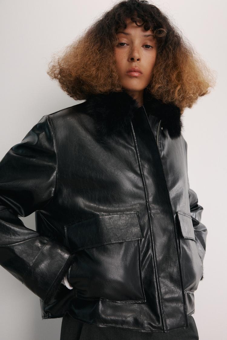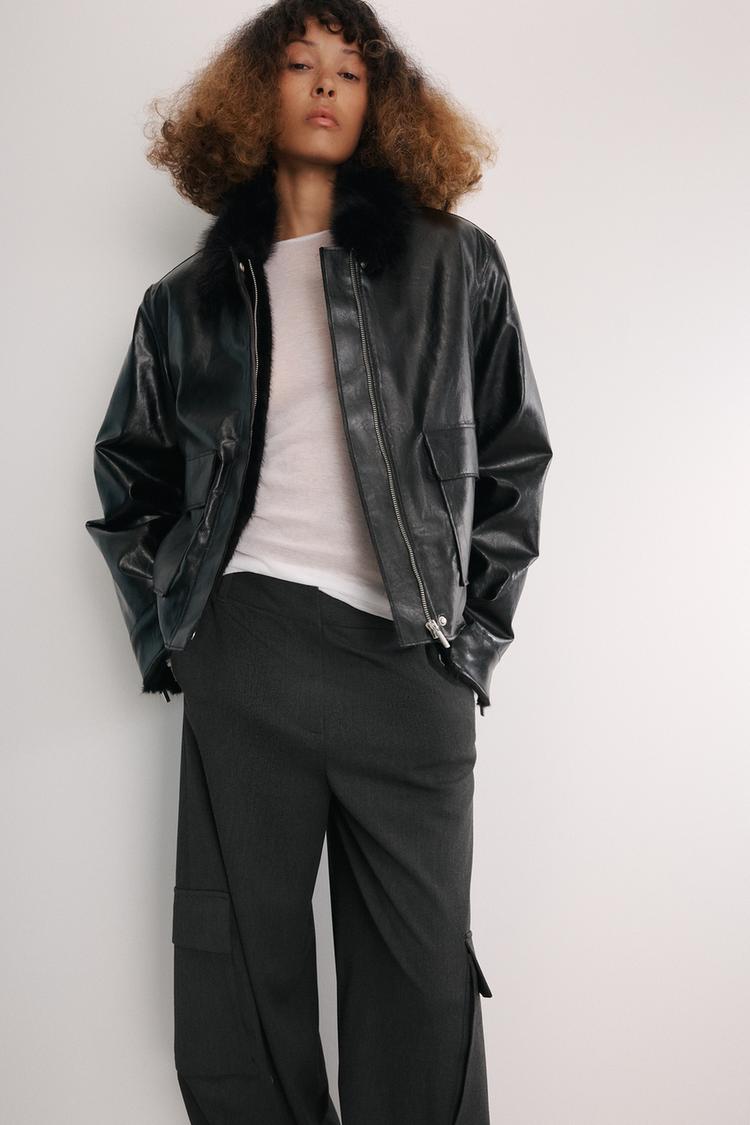 ZARA КУРТКА ИЗ ИСКУССТВЕННОЙ КОЖИ — ZW COLLECTION, ЧЕРНЫЙ