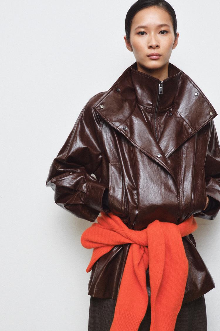 ZARA КУРТКА ИЗ ИСКУССТВЕННОЙ КОЖИ — ZW COLLECTION, КОРИЧНЕВЫЙ