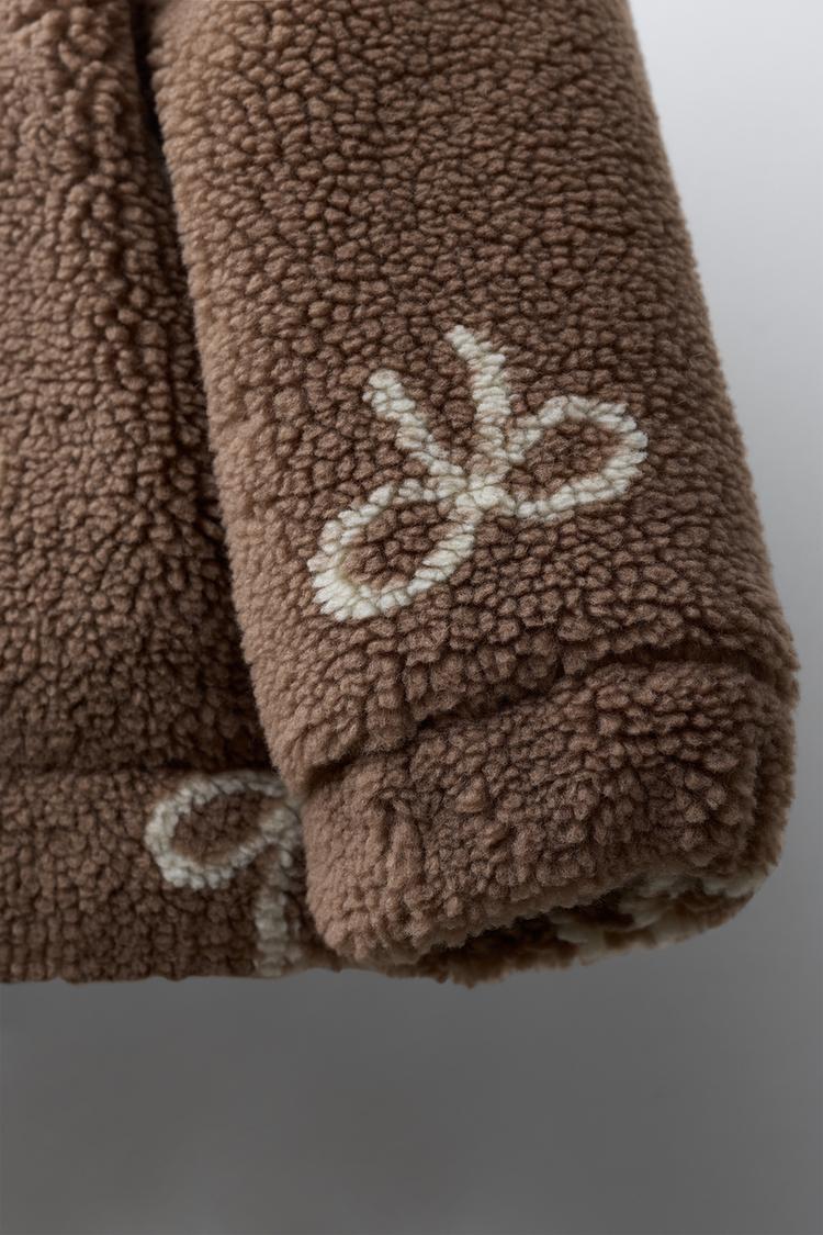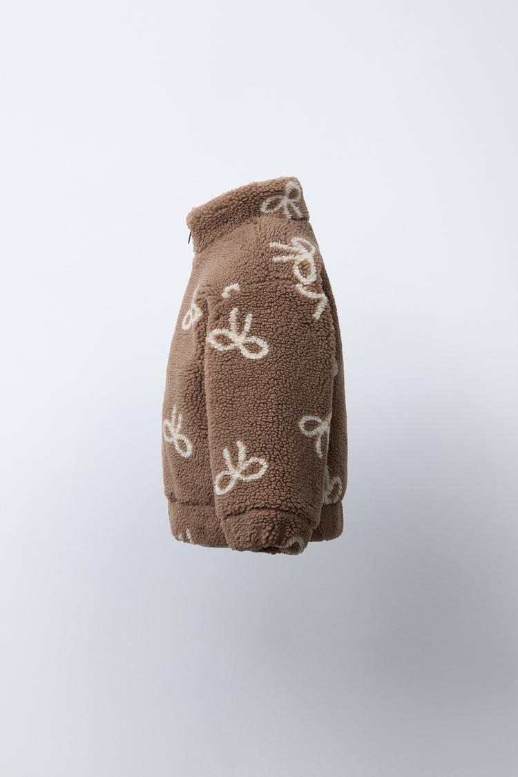 ZARA КУРТКА ИЗ ИСКУССТВЕННОЙ ОВЧИНЫ С БАНТАМИ, КОРИЧНЕВЫЙ