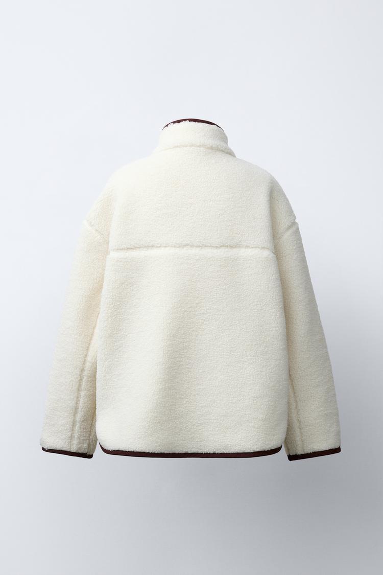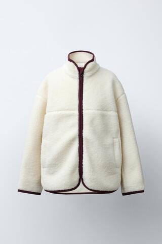 ZARA КУРТКА ИЗ ИСКУССТВЕННОЙ ОВЧИНЫ С ОТОРОЧКОЙ, ЭКРЮ