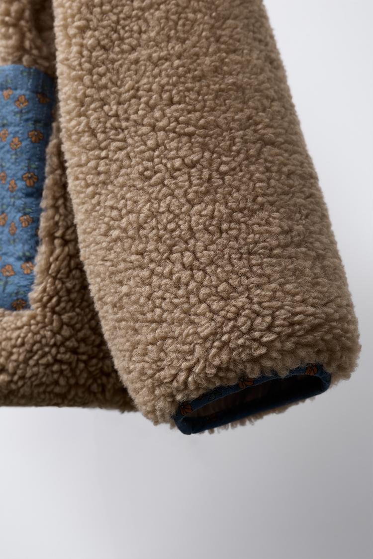 ZARA КУРТКА ИЗ ИСКУССТВЕННОЙ ОВЧИНЫ С ЦВЕТОЧНЫМ ПЭЧВОРКОМ, РЫЖЕВАТО-КОРИЧНЕВЫЙ
