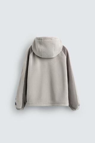 ZARA КУРТКА ИЗ ИСКУССТВЕННОЙ ОВЧИНЫ В СТИЛЕ КОЛОР-БЛОК, ЖЕЛТОВАТО-БЕЛЫЙ