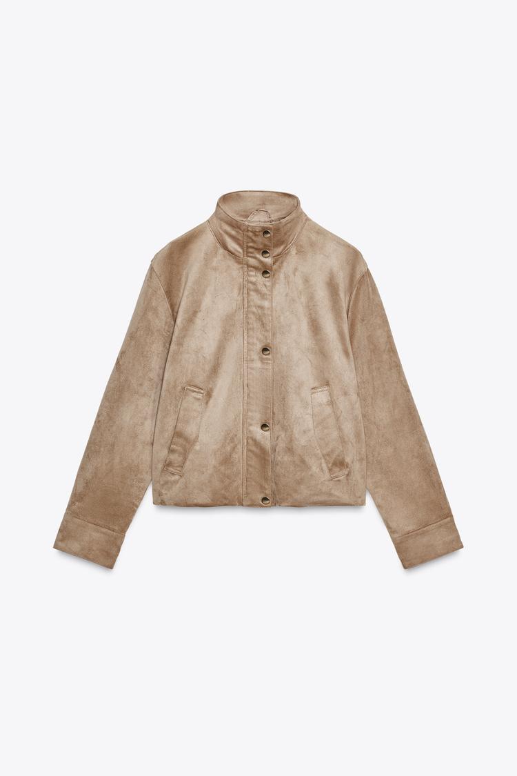 ZARA КУРТКА ИЗ ИСКУССТВЕННОЙ ЗАМШИ, РЫЖЕВАТО-КОРИЧНЕВЫЙ