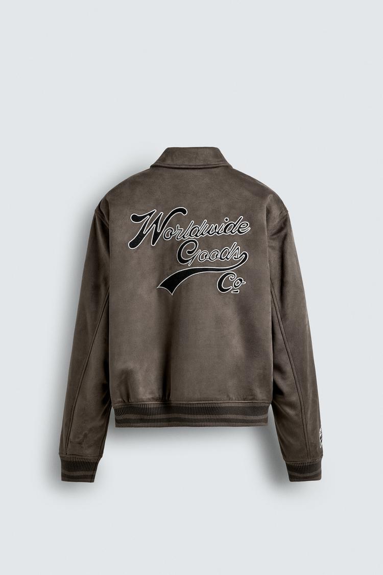 ZARA КУРТКА ИЗ ИСКУССТВЕННОЙ ЗАМШИ С НАШИВКАМИ И ВЫШИВКОЙ, СЕРО-КОРИЧНЕВЫЙ
