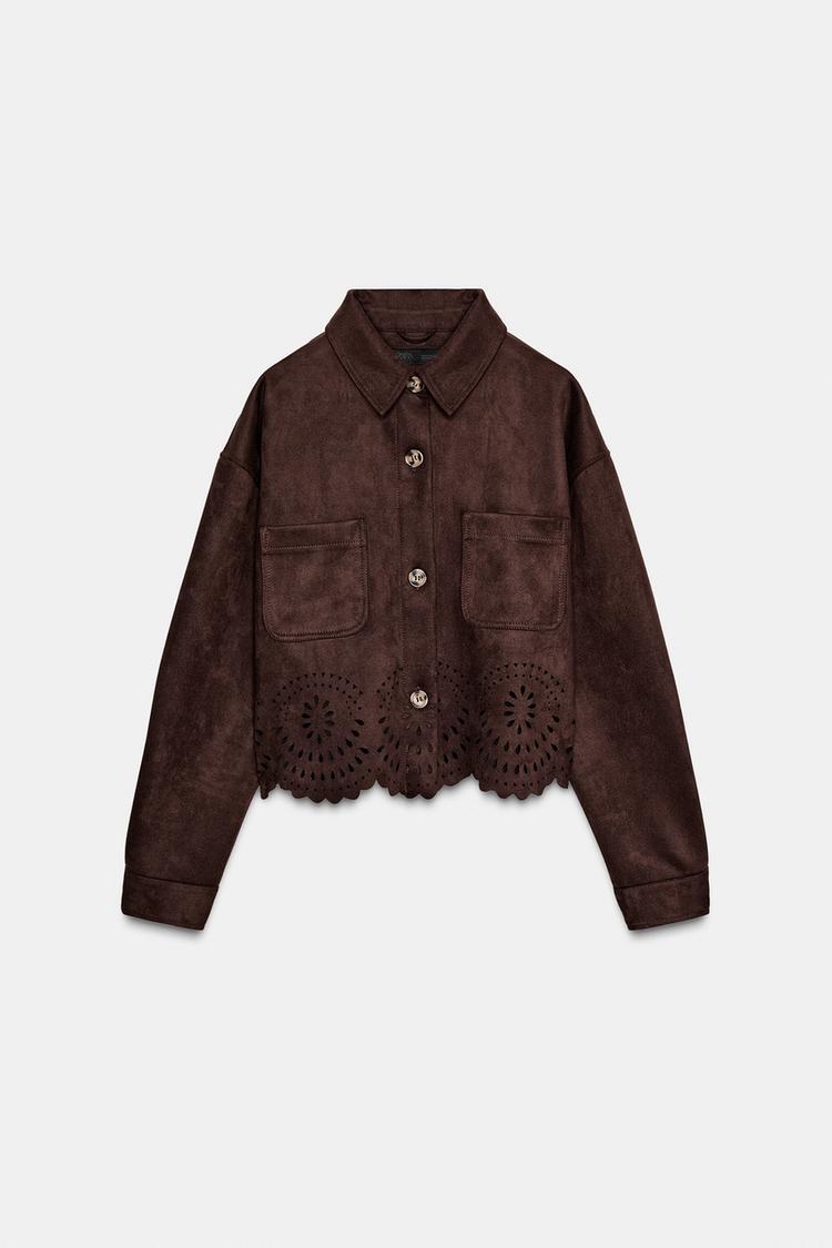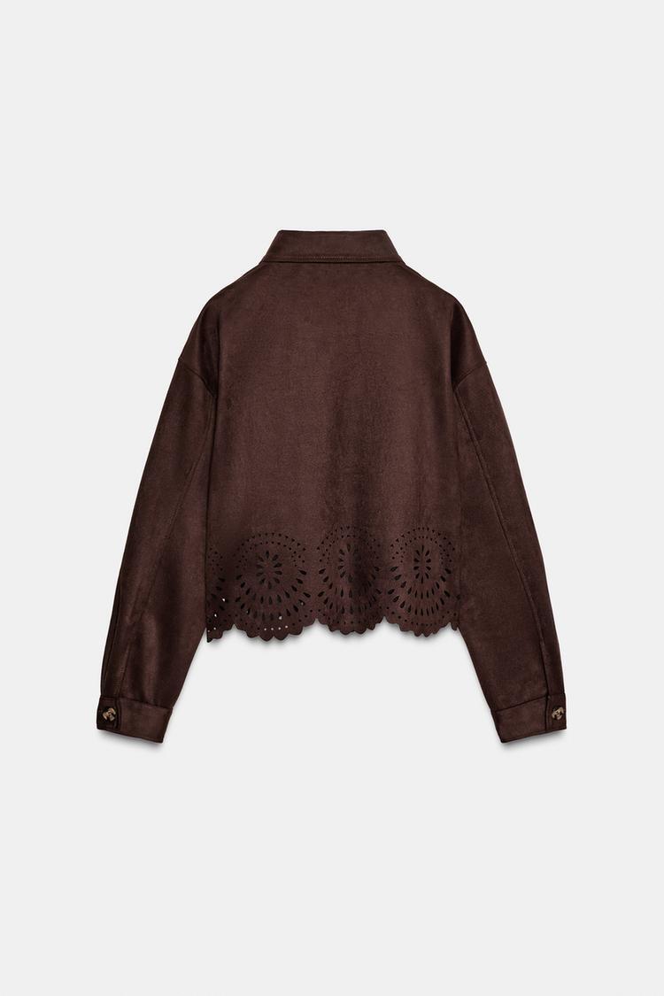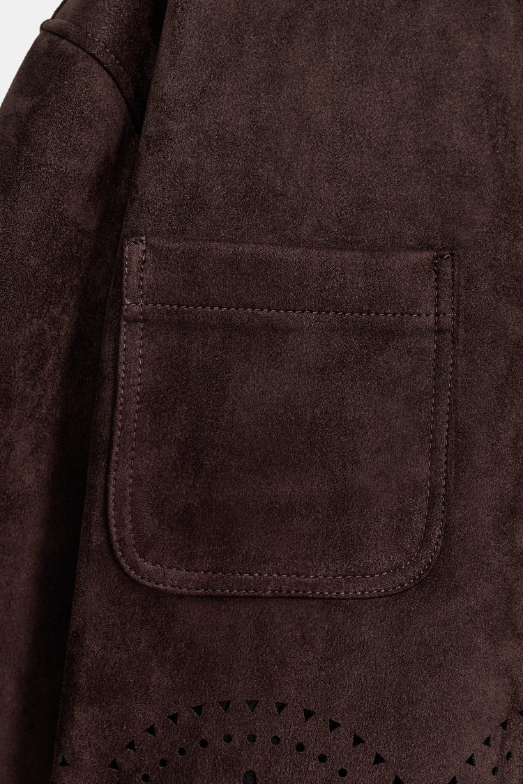 ZARA КУРТКА ИЗ ИСКУССТВЕННОЙ ЗАМШИ С ПЕРФОРИРОВАННЫМ НИЗОМ, КОРИЧНЕВЫЙ