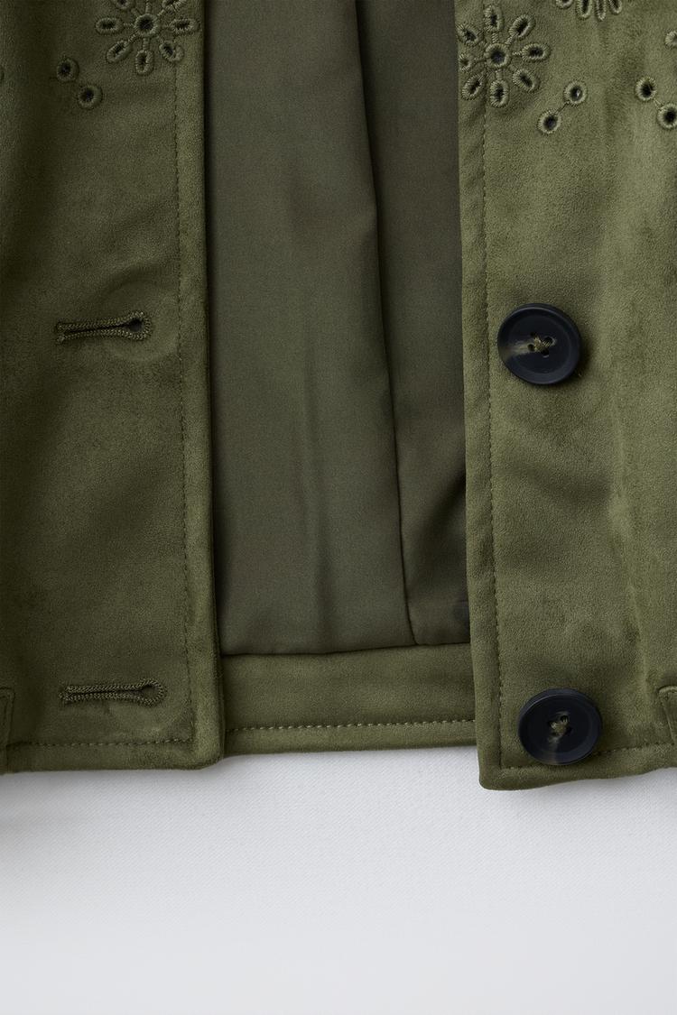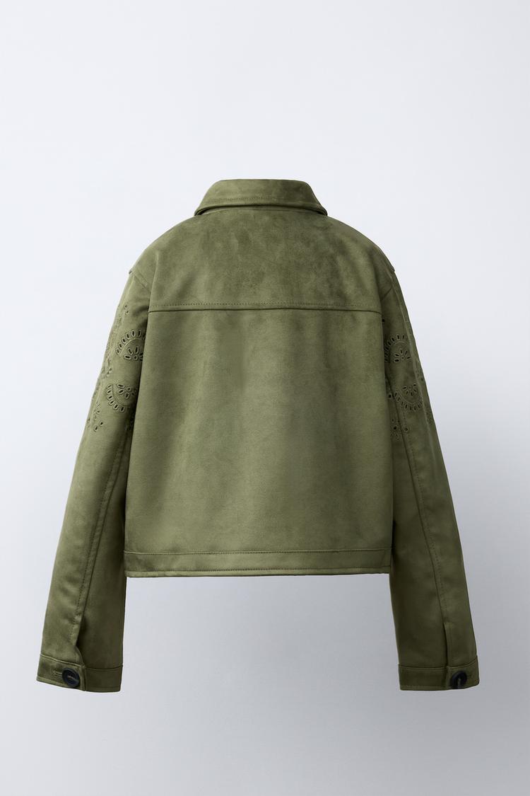 ZARA КУРТКА ИЗ ИСКУССТВЕННОЙ ЗАМШИ С ВЫШИВКОЙ, ХАКИ