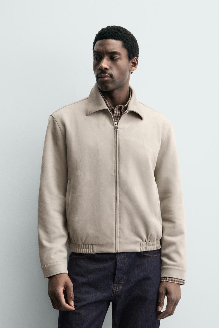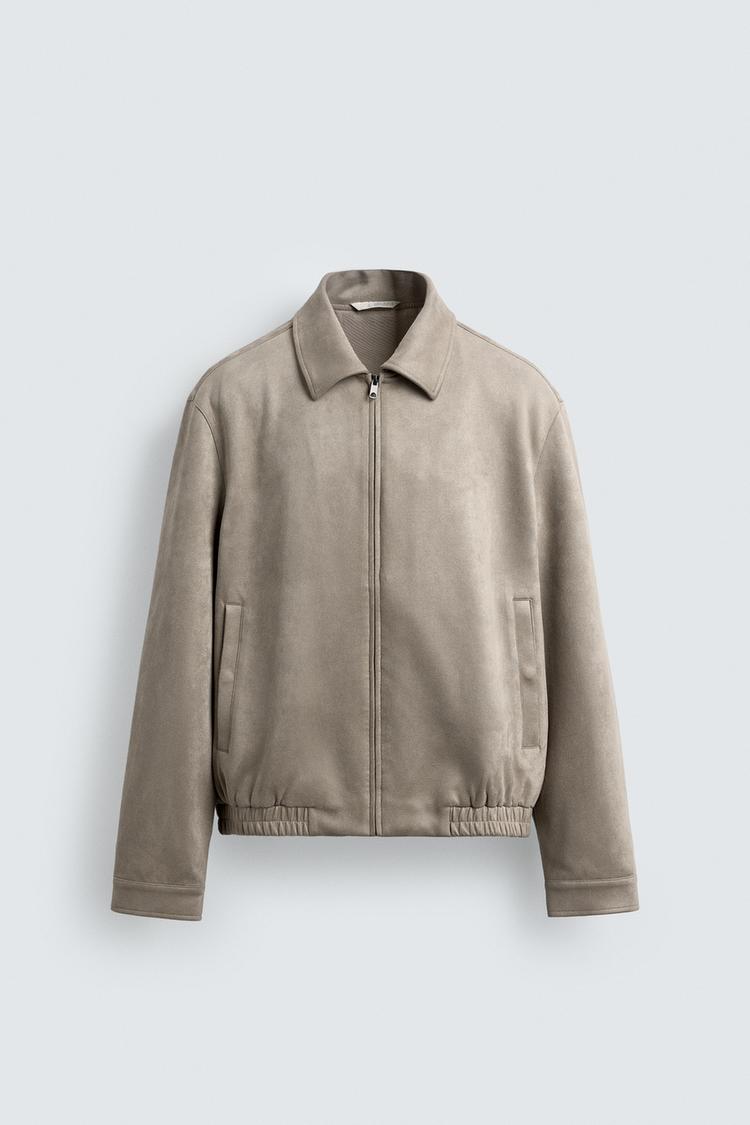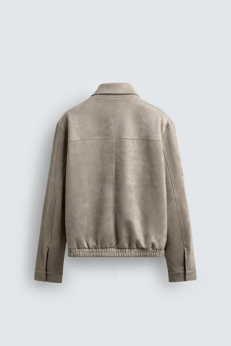 ZARA КУРТКА ИЗ ИСКУССТВЕННОЙ ЗАМШИ, СВЕТЛО-СЕРЫЙ
