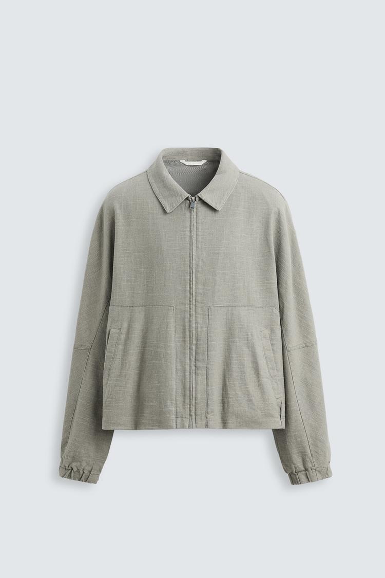 ZARA КУРТКА ИЗ ЛЬНА И ХЛОПКА, ЗЕЛЕНОВАТЫЙ
