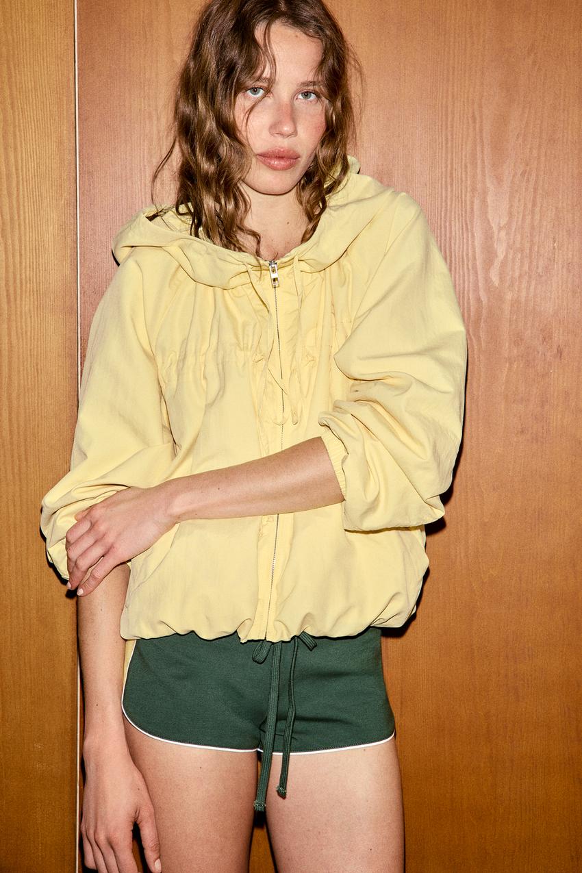 ZARA КУРТКА ИЗ НЕЙЛОНА С ЗАВЯЗКАМИ, ЖЕЛТЫЙ