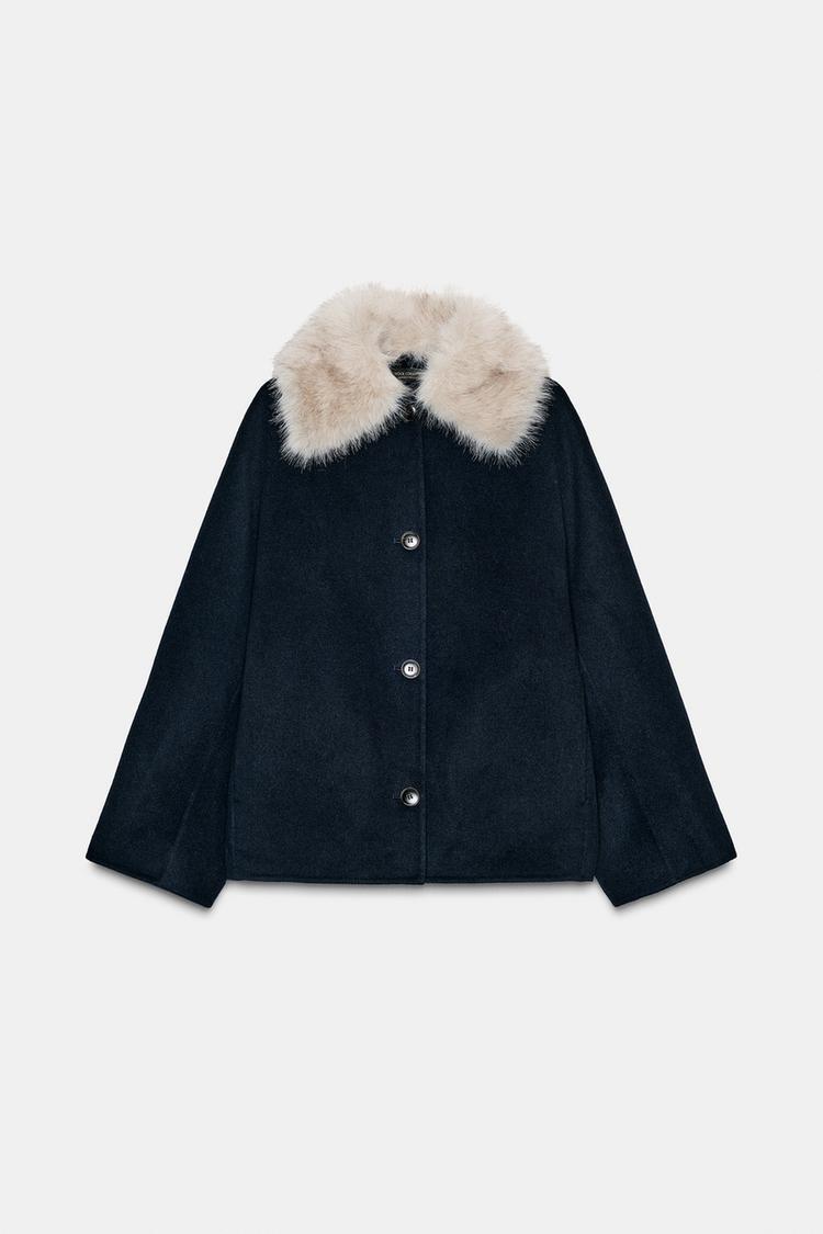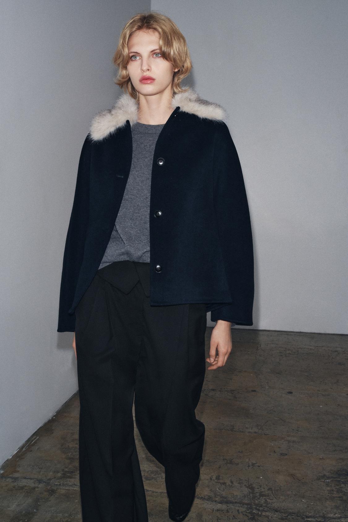 ZARA КУРТКА ИЗ ШЕРСТИ С МЕХОВЫМ ВОРОТНИКОМ — ZW COLLECTION, МОРСКОЙ СИНИЙ