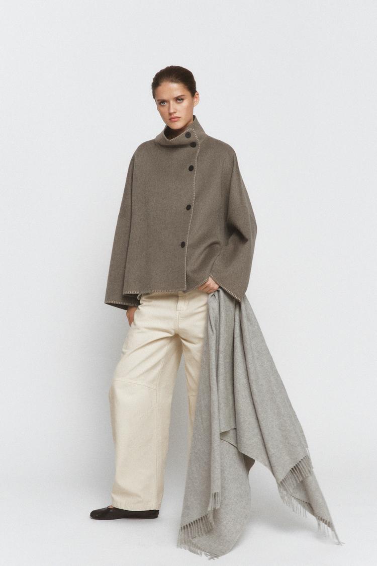 ZARA КУРТКА ИЗ СМЕСОВОЙ ШЕРСТИ С КОНТРАСТНОЙ СТРОЧКОЙ — ZW COLLECTION, СЕРОВАТО-КОРИЧНЕВЫЙ