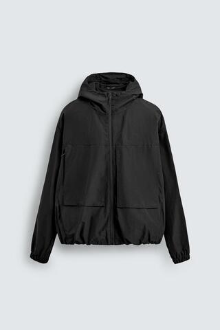 ZARA КУРТКА ИЗ ТЕХНИЧЕСКОЙ ТКАНИ С ФЛИСОМ, ЧЕРНЫЙ