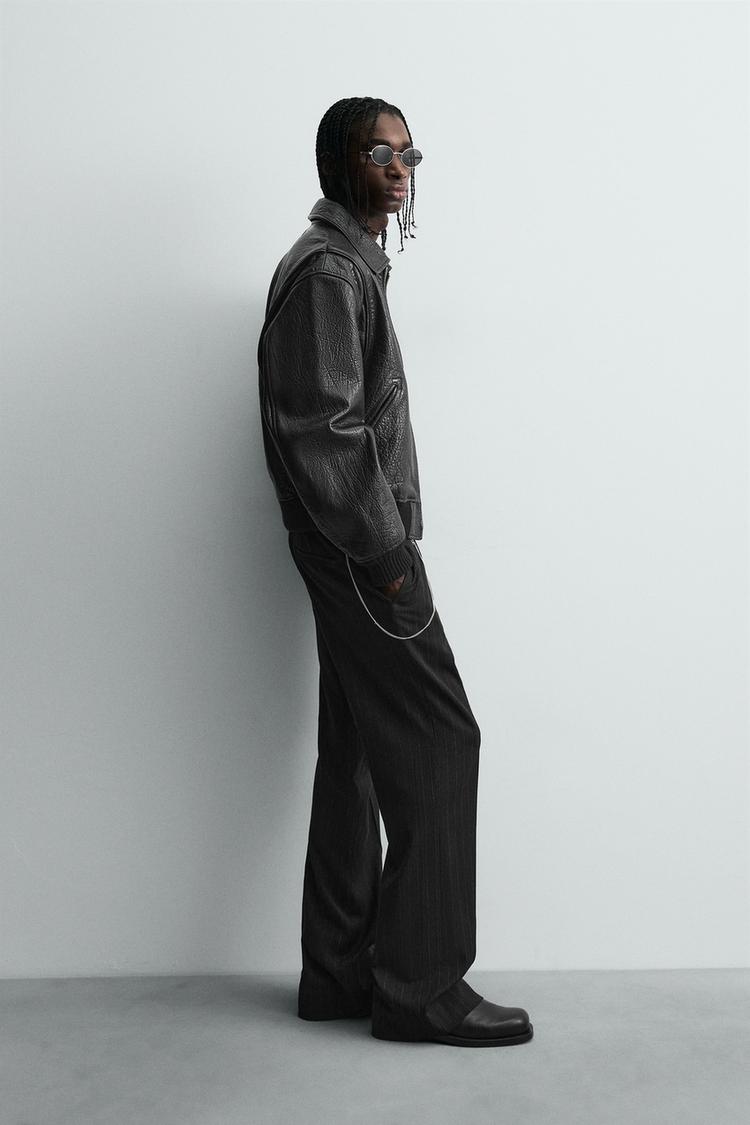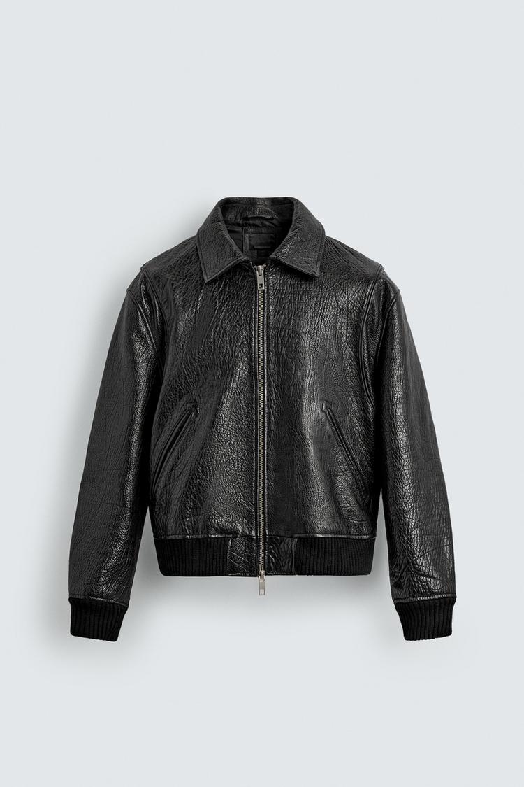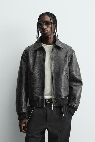 ZARA КУРТКА ИЗ ТИСНЕНОЙ КОЖИ, ЧЕРНЫЙ