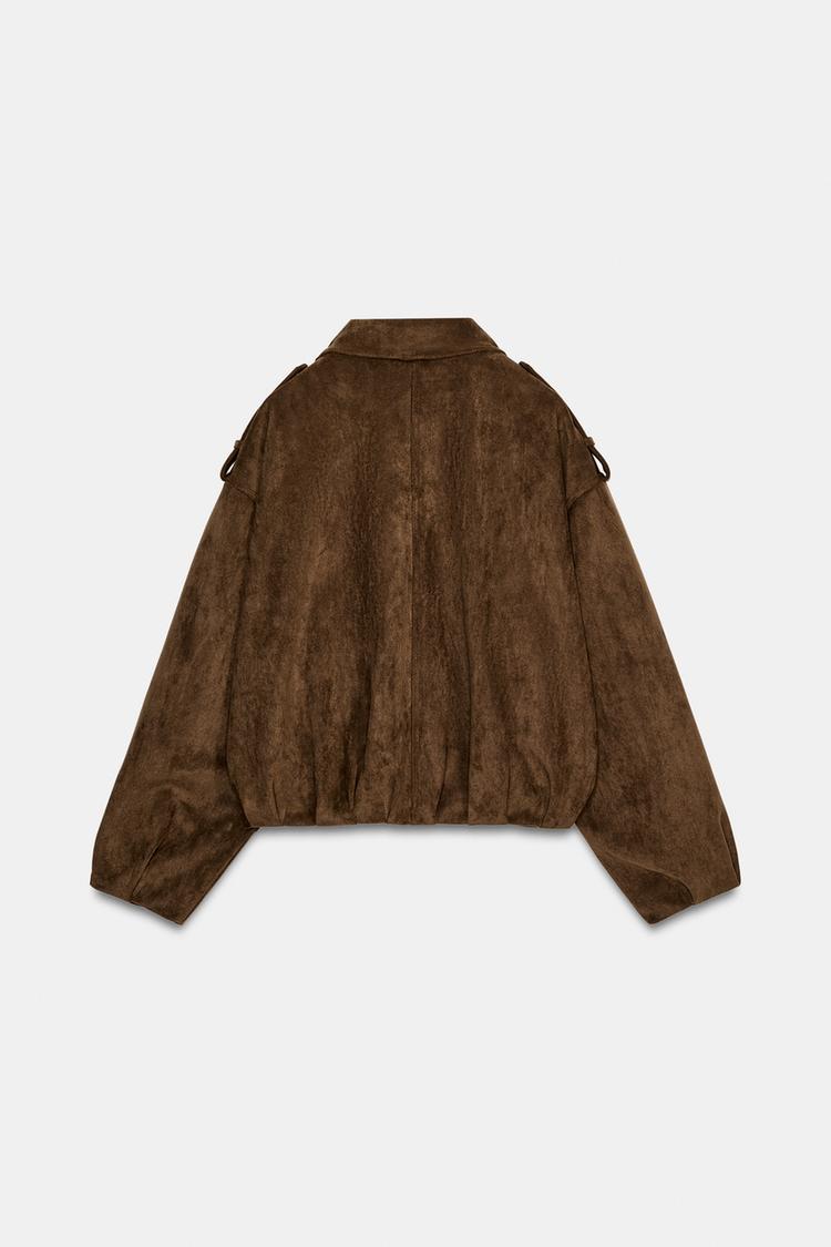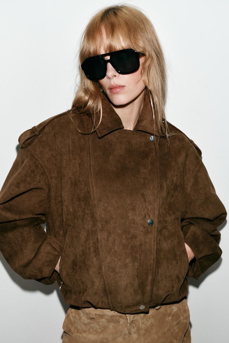 ZARA КУРТКА ОВЕРСАЙЗ В БАЙКЕРСКОМ СТИЛЕ ИЗ ИСКУССТВЕННОЙ ЗАМШИ, КОРИЧНЕВЫЙ