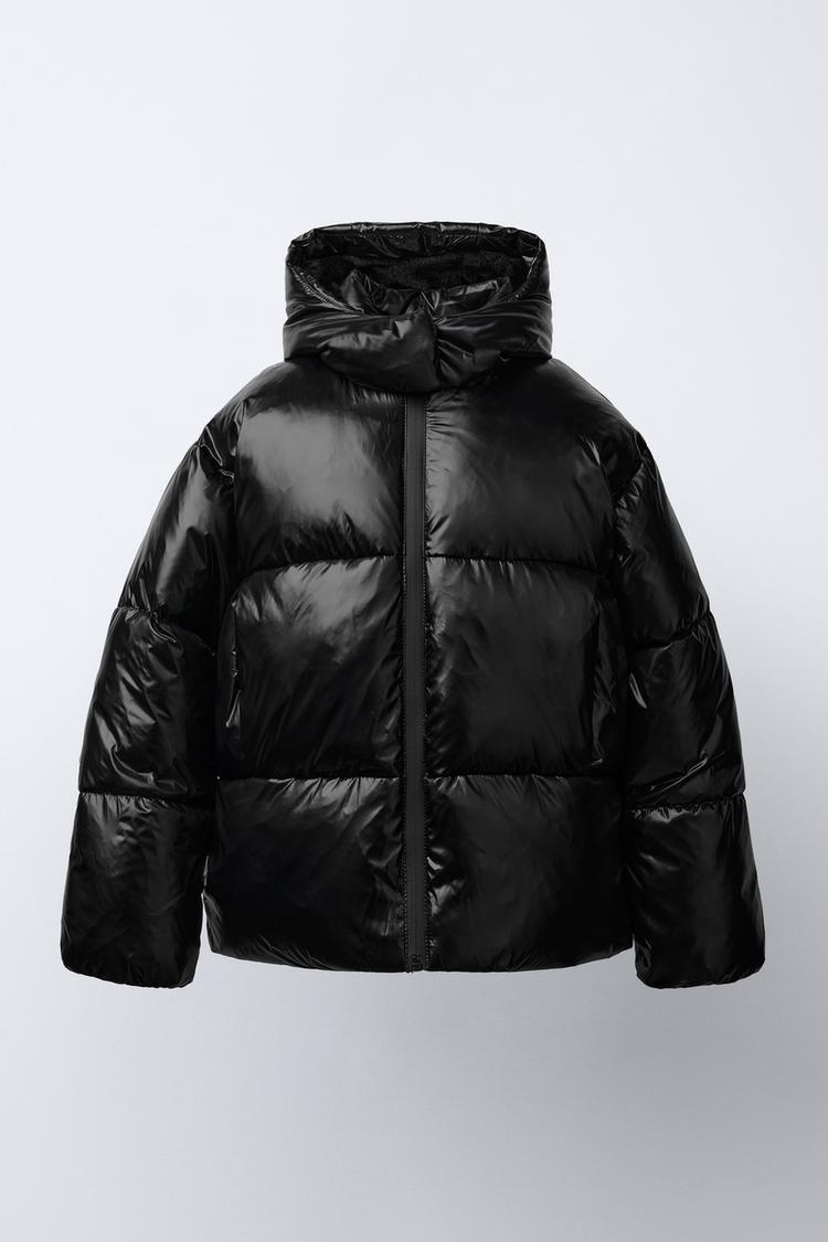 ZARA КУРТКА-ПУХОВИК С КАПЮШОНОМ, ЧЕРНЫЙ