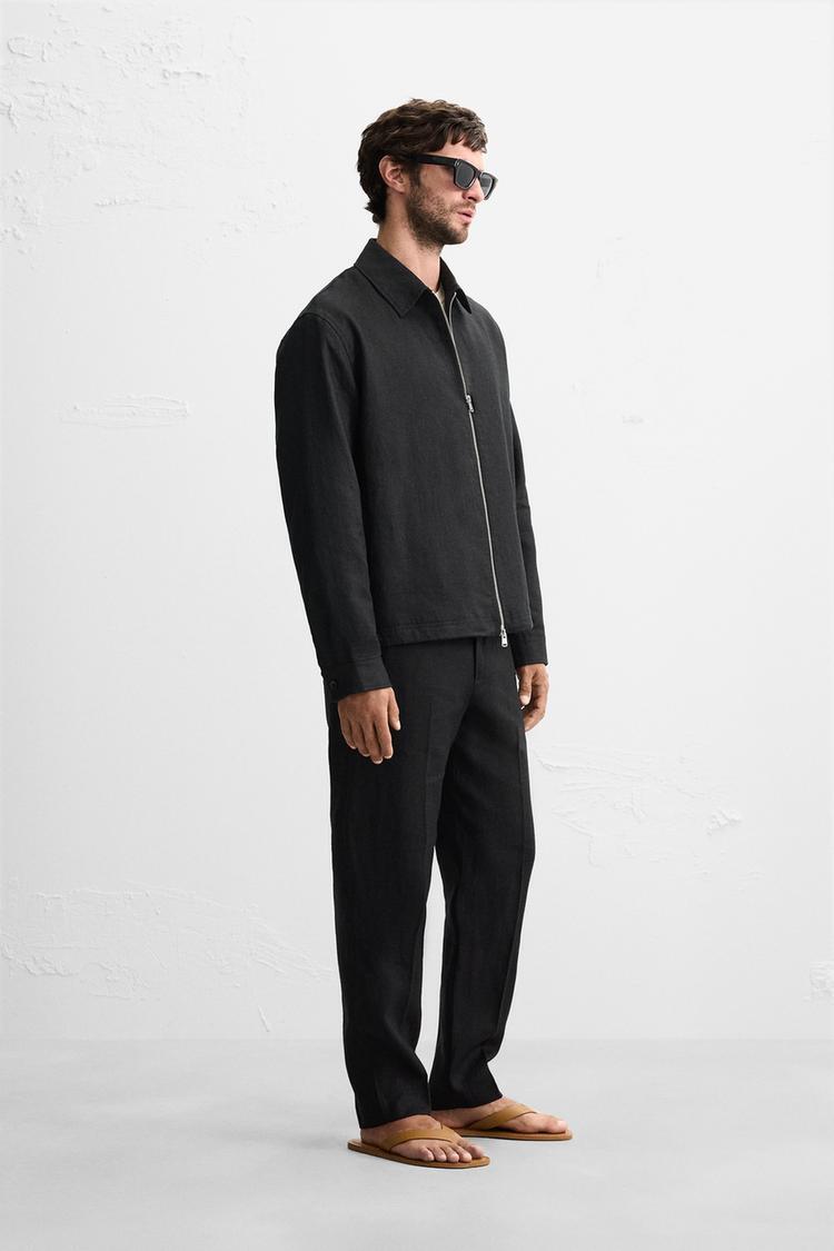 ZARA КУРТКА-РУБАШКА ИЗ 100% ЛЬНА, ЧЕРНЫЙ