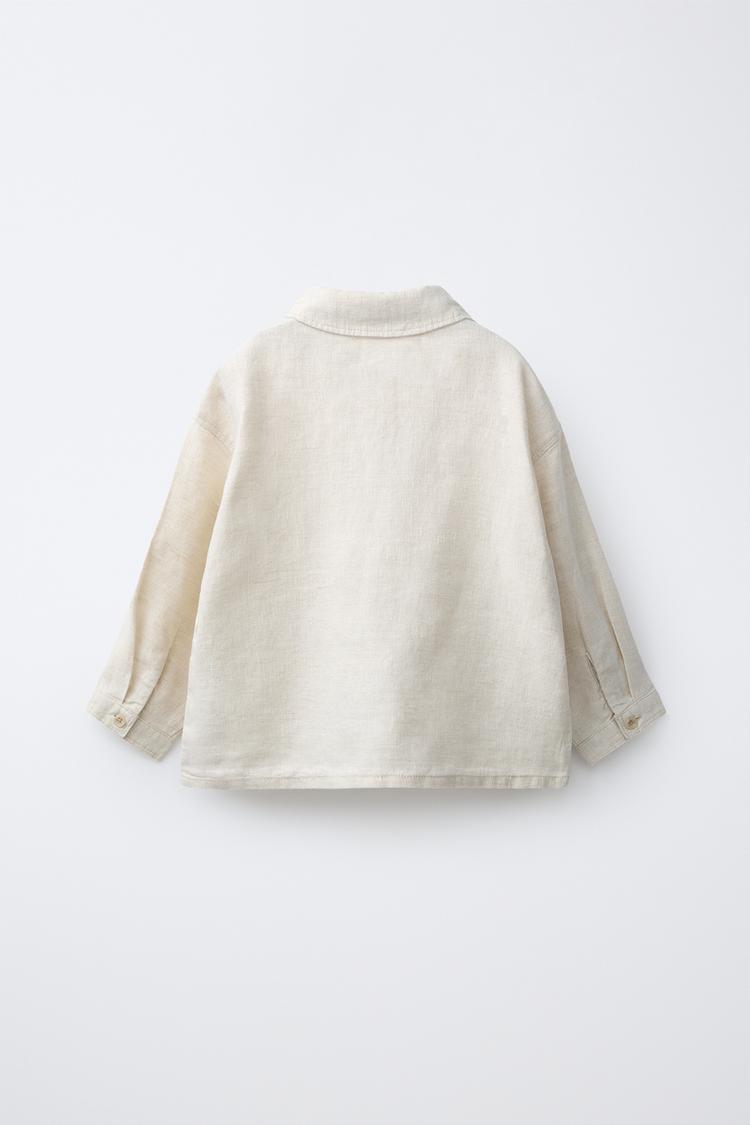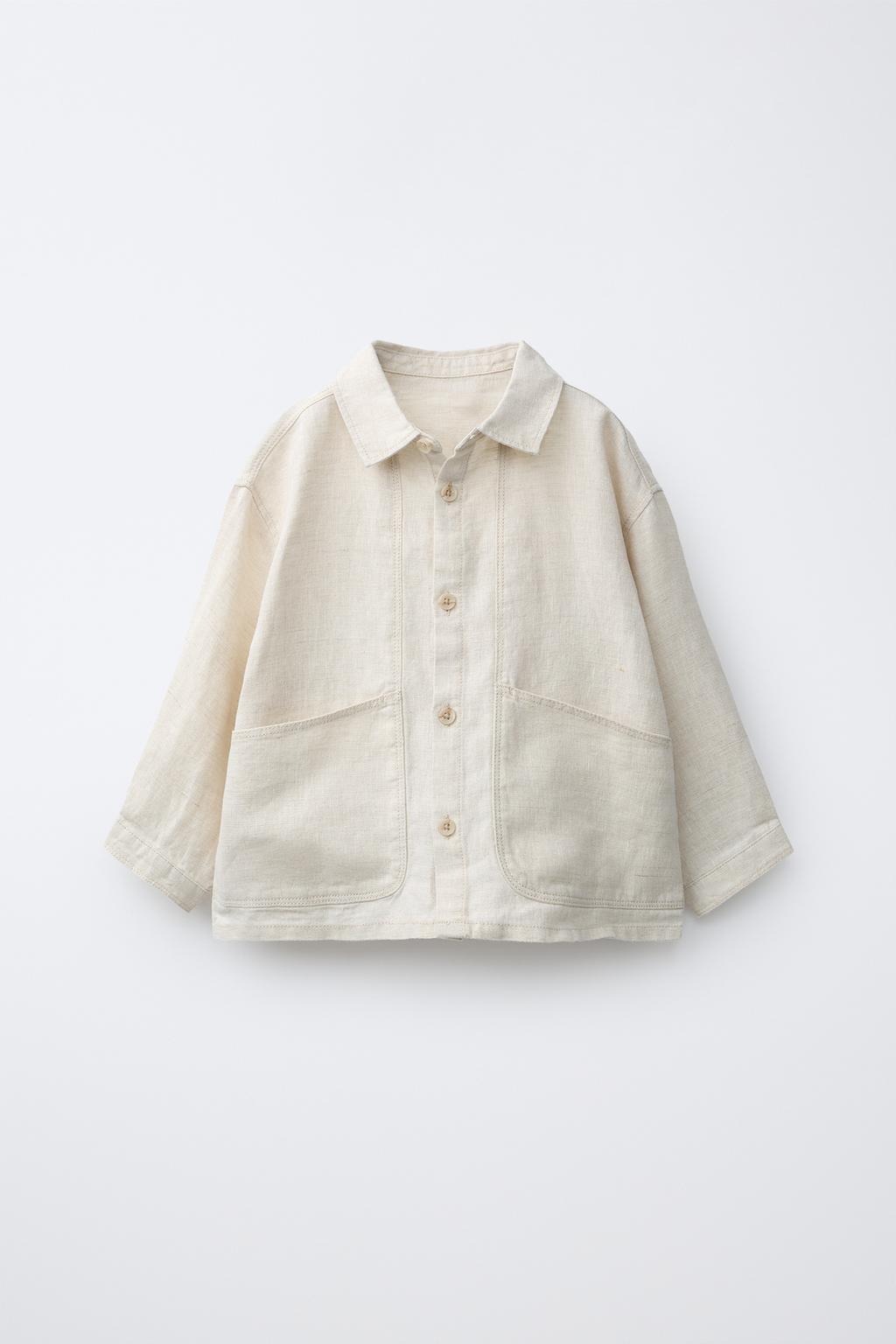 ZARA КУРТКА-РУБАШКА ИЗ 100% ЛЬНА, СВЕТЛО-БЕЖЕВЫЙ