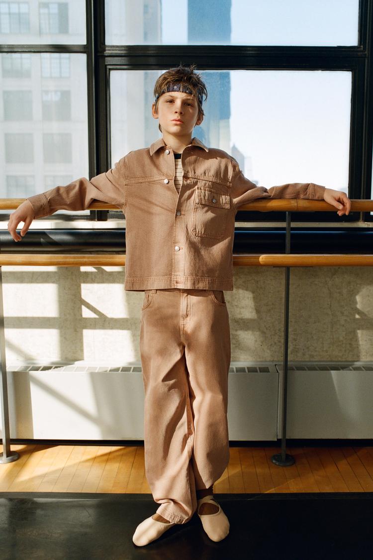 ZARA КУРТКА-РУБАШКА ИЗ ХОЛЩА С КАРМАНОМ, ТЫКВЕННЫЙ