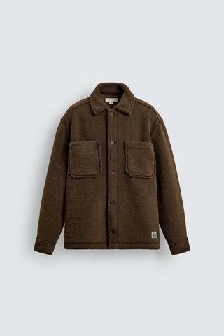 ZARA КУРТКА-РУБАШКА ИЗ ИСКУССТВЕННОЙ ОВЧИНЫ С КАРМАНАМИ, КОРИЧНЕВЫЙ