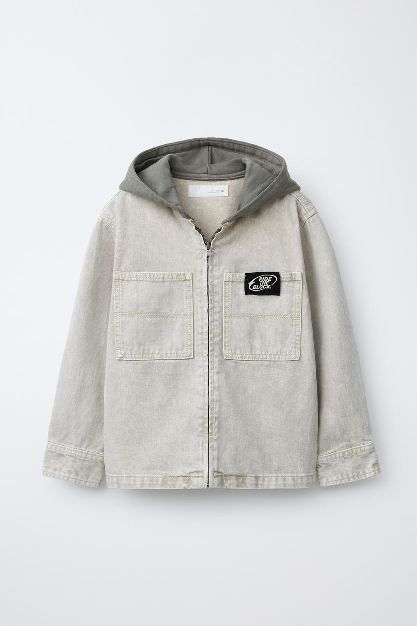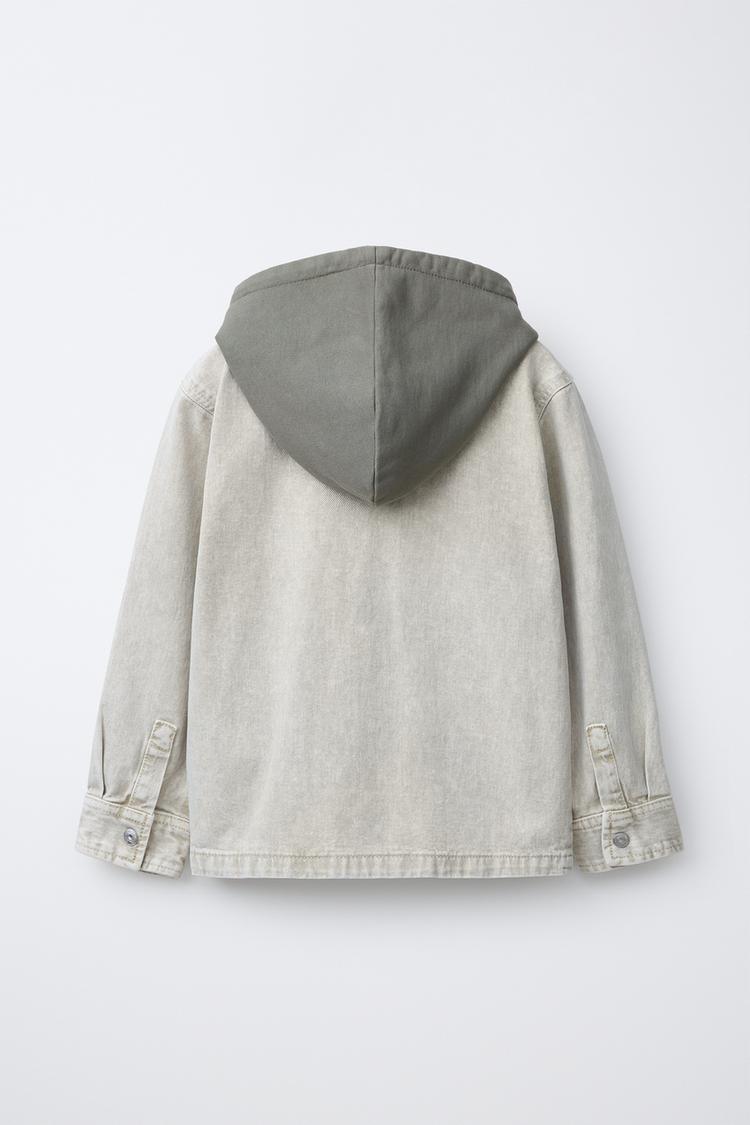 ZARA КУРТКА-РУБАШКА ИЗ САРЖИ С КАПЮШОНОМ, СЕРО-КОРИЧНЕВЫЙ