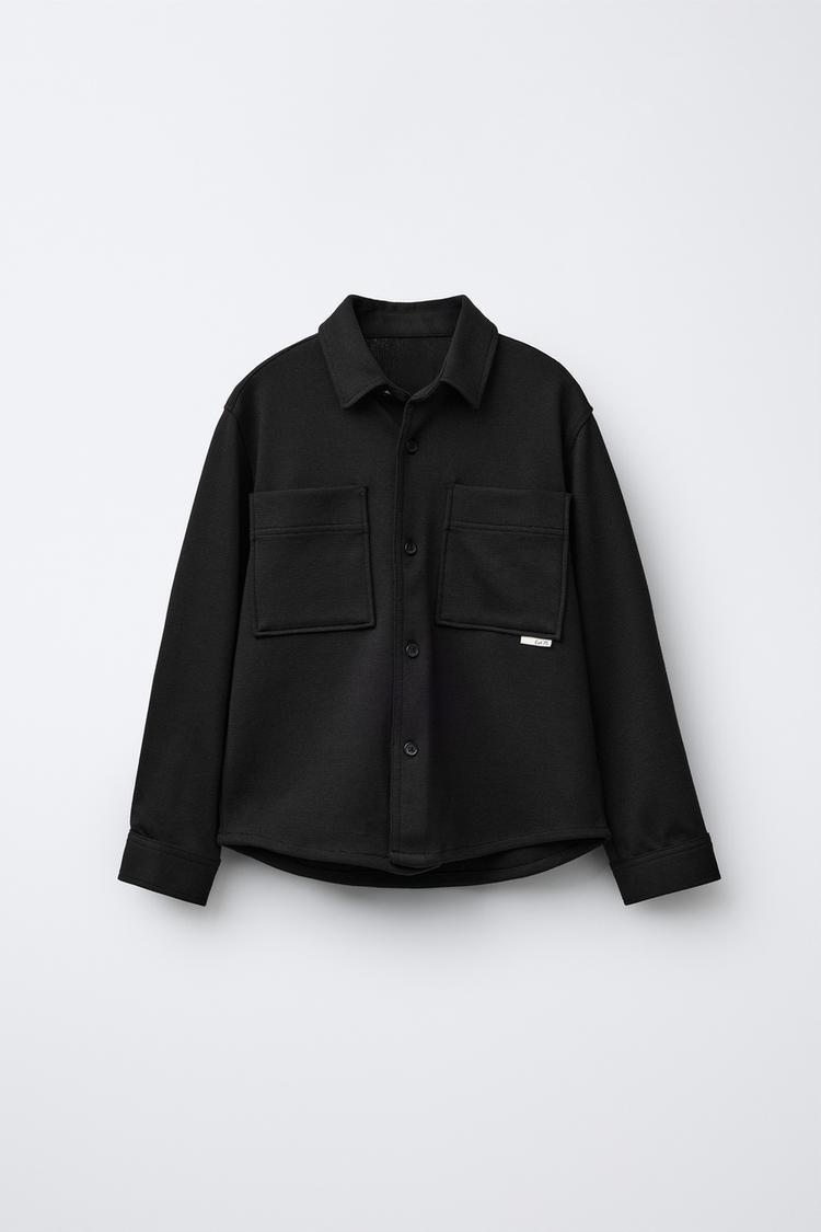 ZARA КУРТКА-РУБАШКА КОМФОРТНОЙ ПОСАДКИ С КАРМАНАМИ, ЧЕРНЫЙ