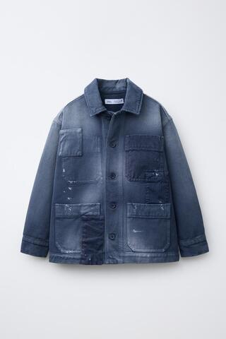 ZARA КУРТКА-РУБАШКА С ЭФФЕКТОМ ПОТЕРТОСТИ, СИНИЙ