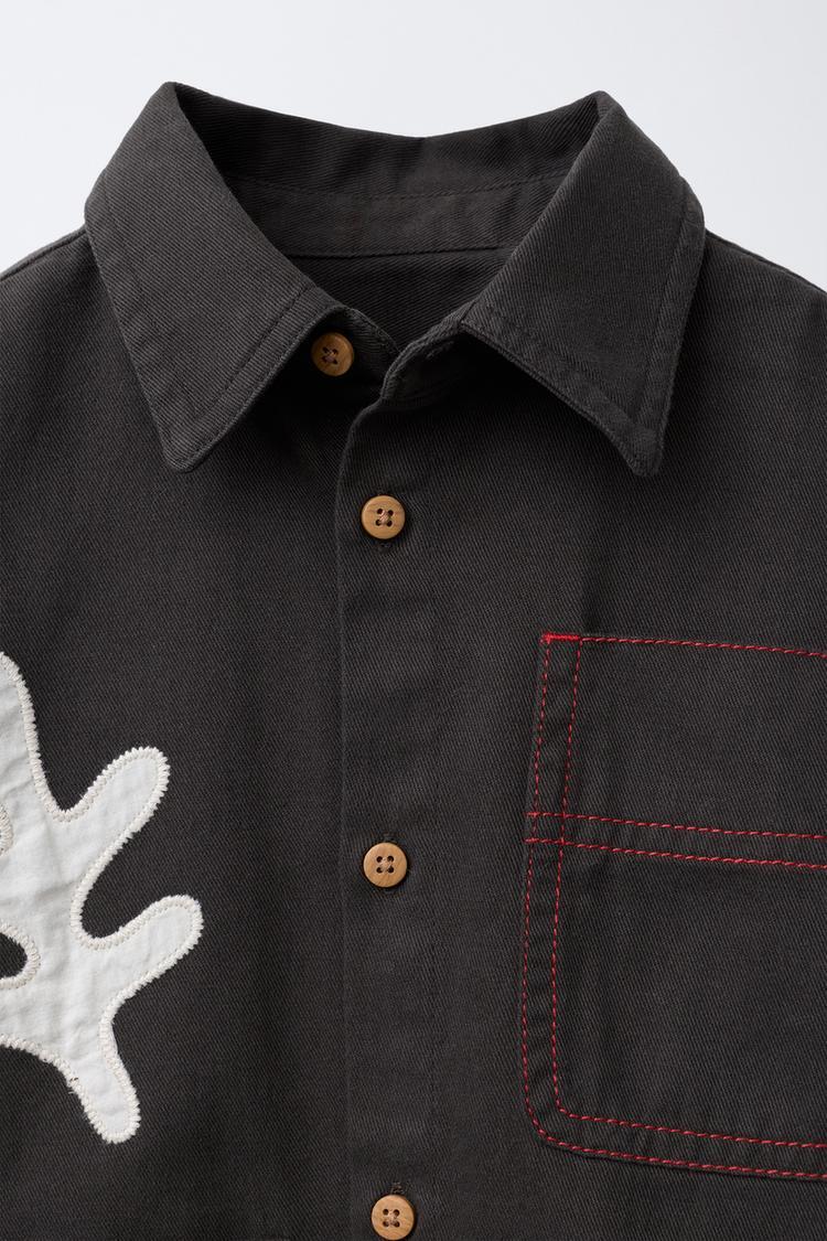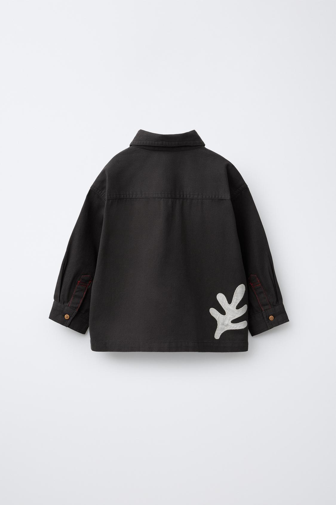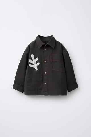 ZARA КУРТКА-РУБАШКА С ЛИСТЬЯМИ-НАШИВКАМИ, КОРИЧНЕВЫЙ