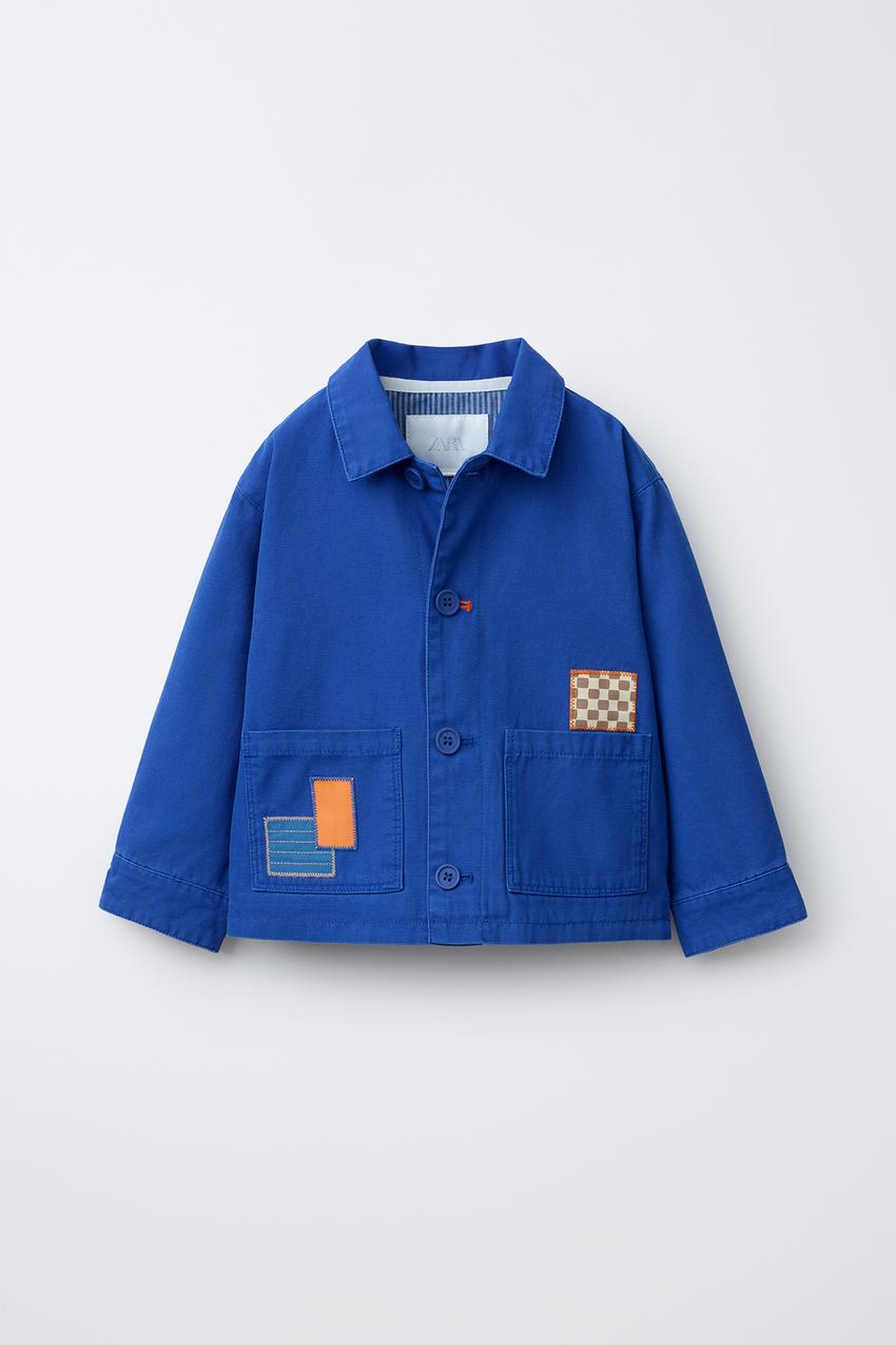 ZARA КУРТКА-РУБАШКА С НАШИВКАМИ, ЯРКО-СИНИЙ