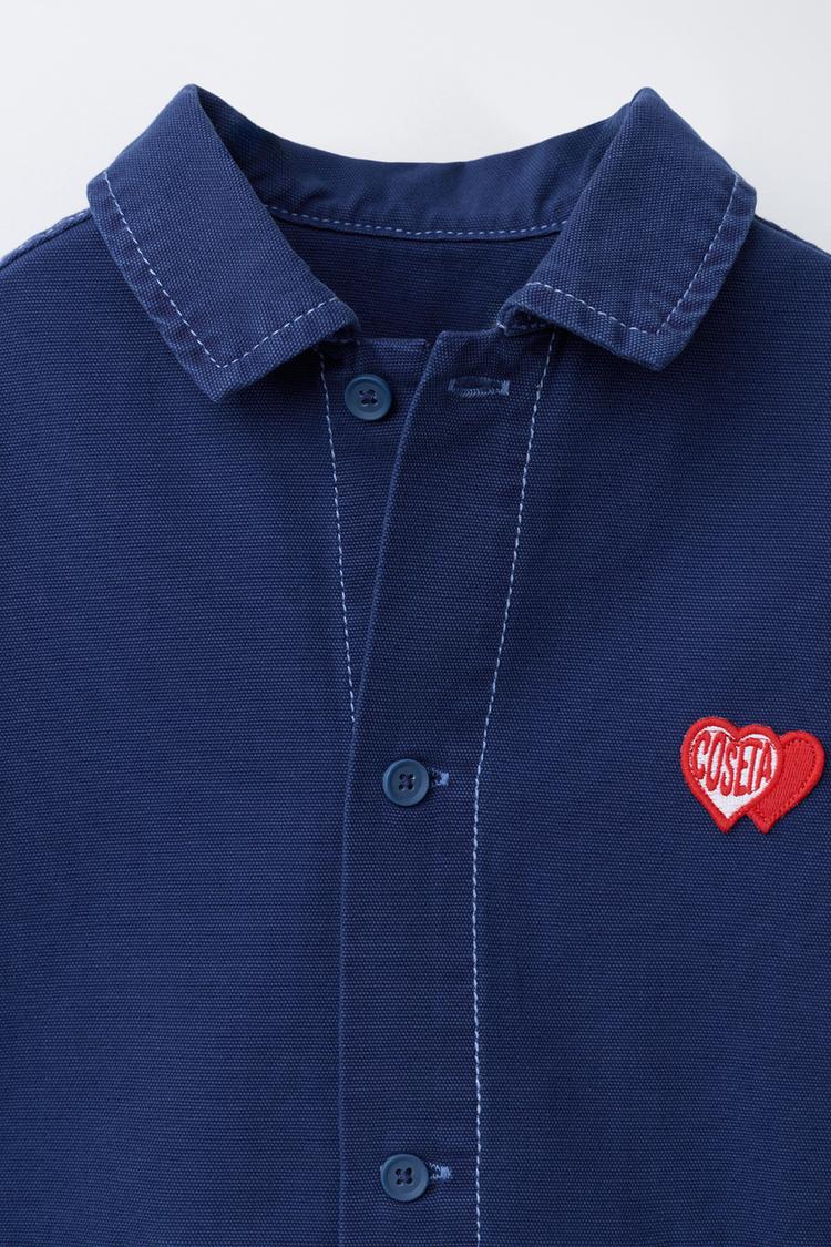 ZARA КУРТКА-РУБАШКА С НАШИВКОЙ «СЕРДЦЕ», ЧЕРНИЛЬНО-СИНИЙ