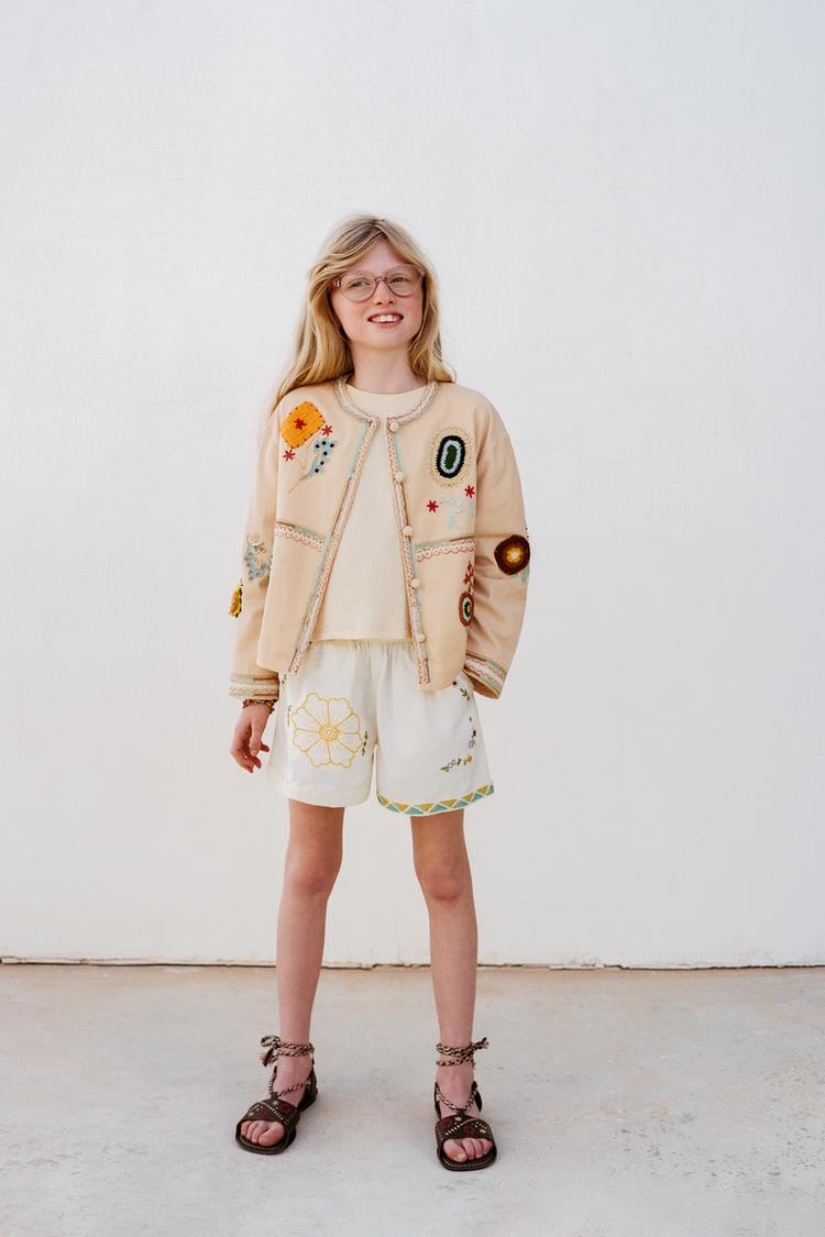 ZARA КУРТКА-РУБАШКА С ВЫШИВКОЙ, РЫЖЕВАТО-КОРИЧНЕВЫЙ
